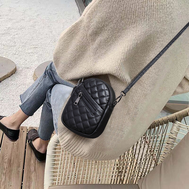 レディースバッグ斜め掛けバッグ本革チェック柄ミニショルダーポーチ携帯バッグ何とでも合うショルダーバッグ.ポシェット