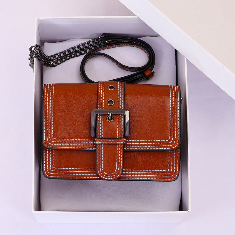 レディースバッグ本革チェーンバッグファッションスクエアバッグシンプルレトロエレガントショルダーバッグ.ポシェット