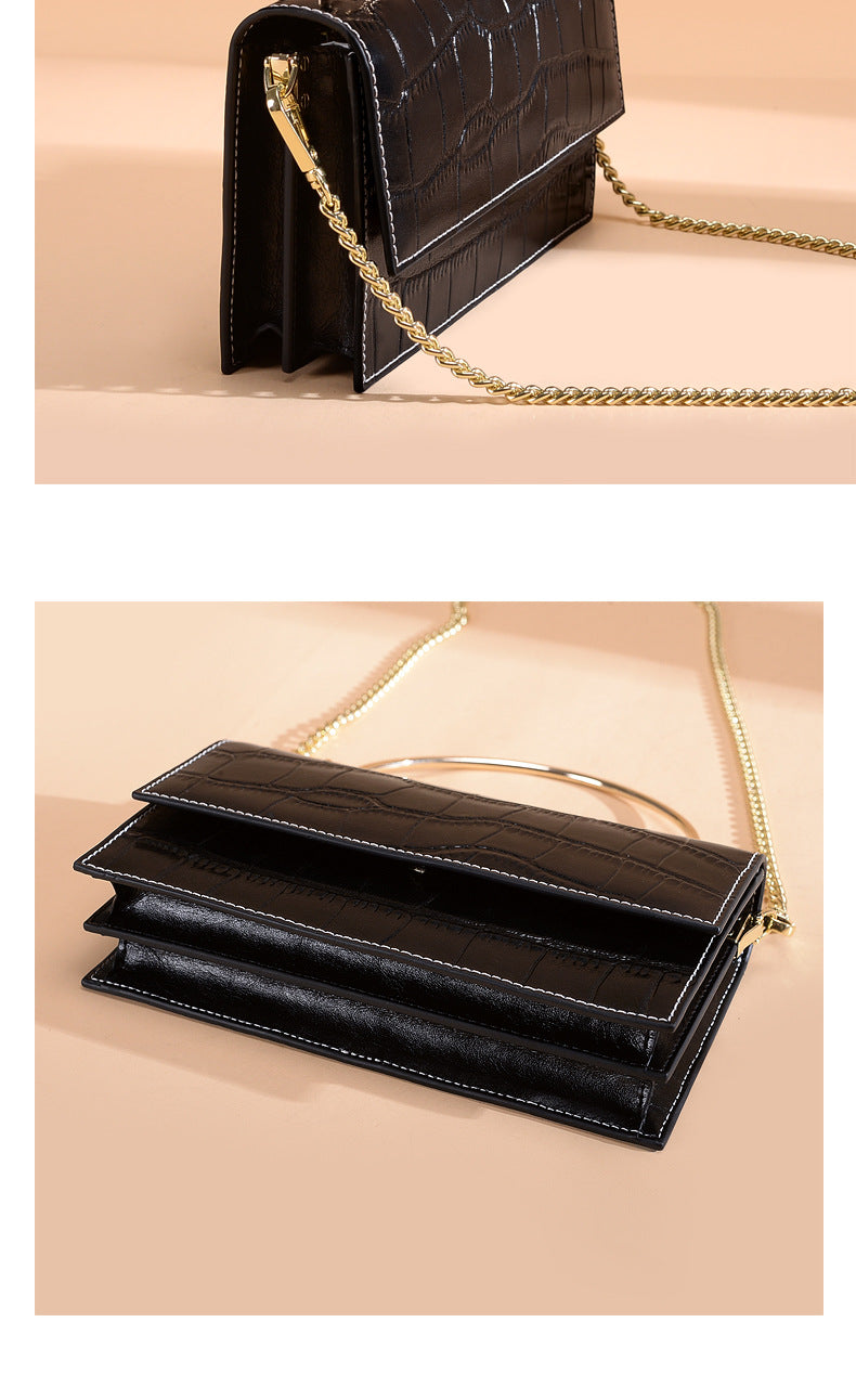 レディースバッグ本革ハンドバッグファッションチェーンバッグシンプルスクエアバッグエレガントショルダーバッグ.ポシェット