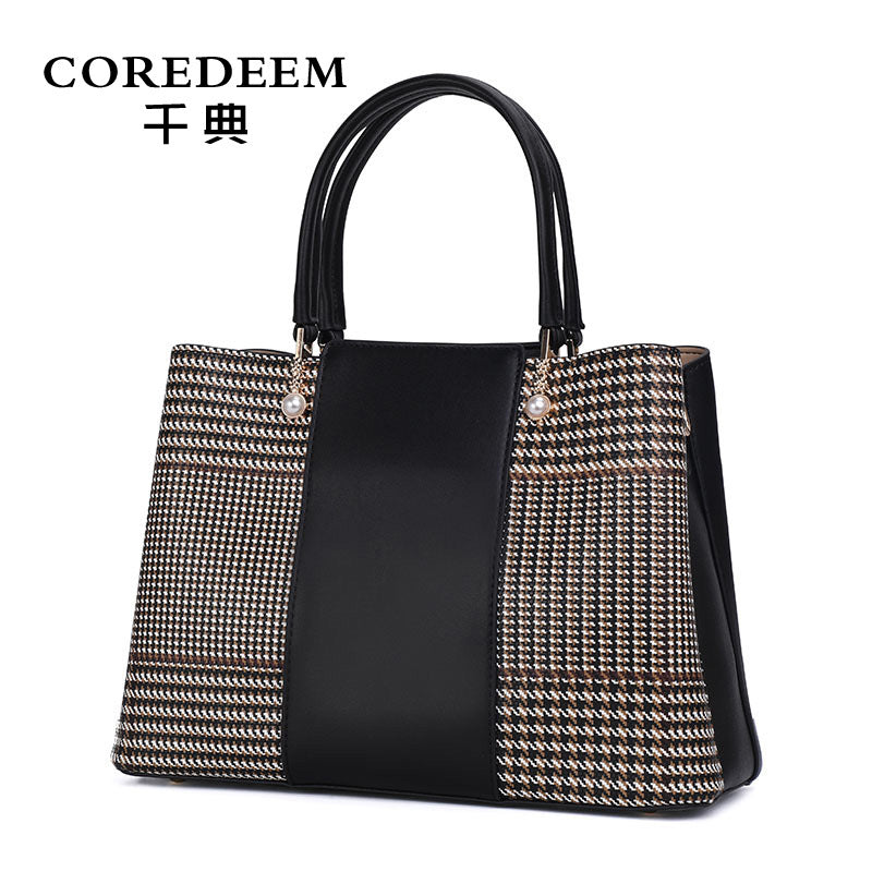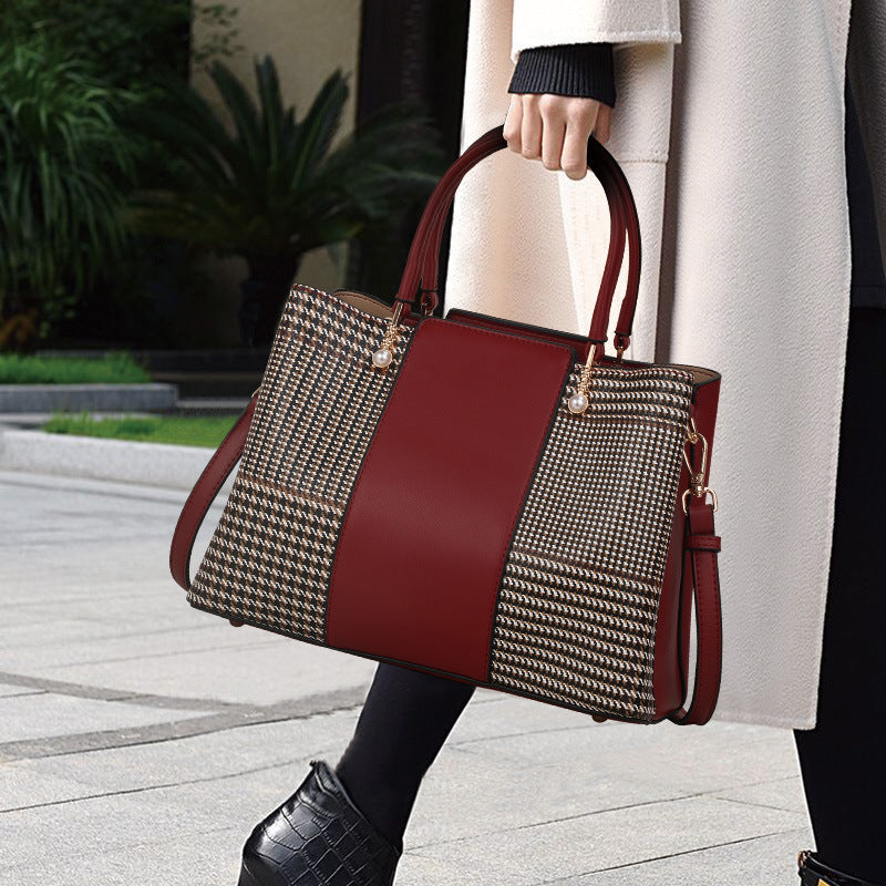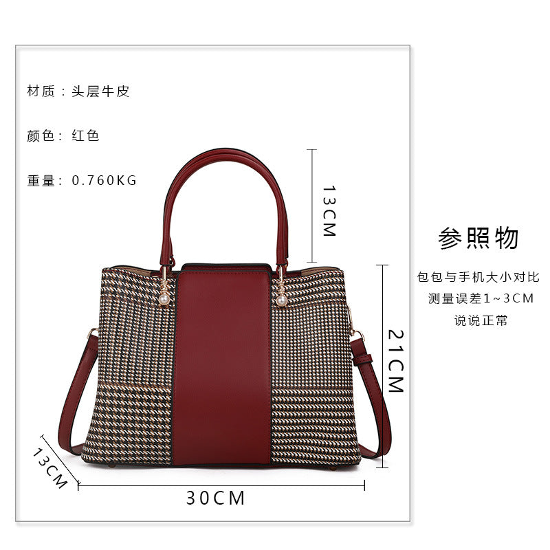 レディースバッグ本革ハンドバッグ大気ファッション千鳥格スプライスショルダーバッグ気質エレガントハンドバッグ.カバン