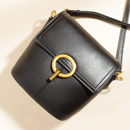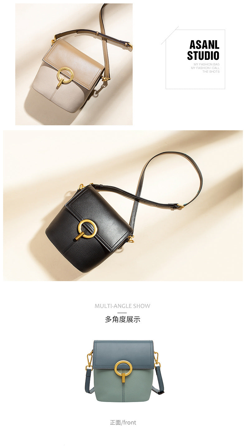 レディースバッグ本革バケツバッグファッションブロードバンドカラーマッチングエレガントショルダーバッグ.ポシェット