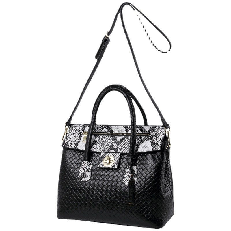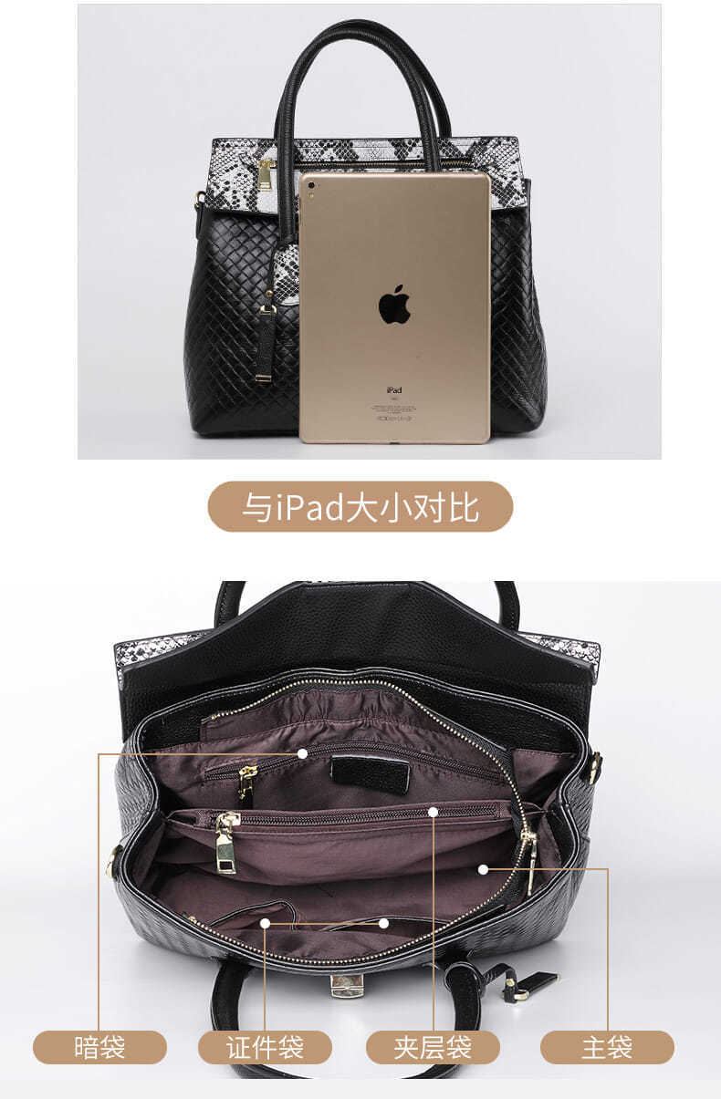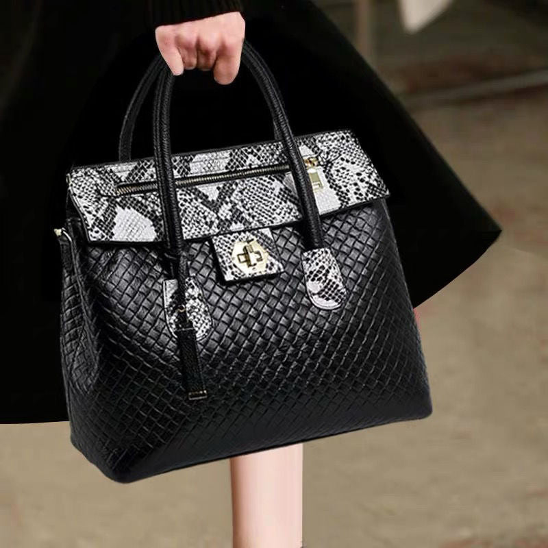 レディースバッグ本革ファッションハンドバッグ大容量パイソン柄スプライスショルダーバッグ気質エレガントハンドバッグ.カバン