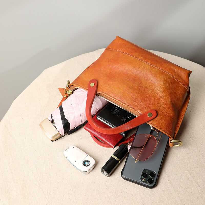 レディースバッグ本革レトロバケツバッグハンドバッグ大容量シンプル何とでも合うショルダーバッグ.ポシェット