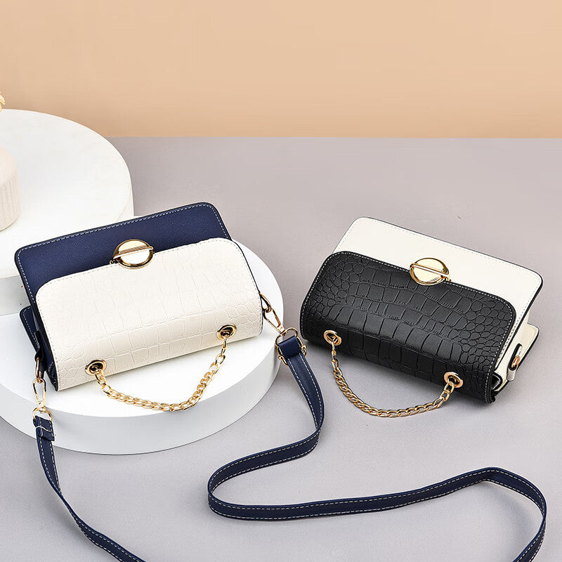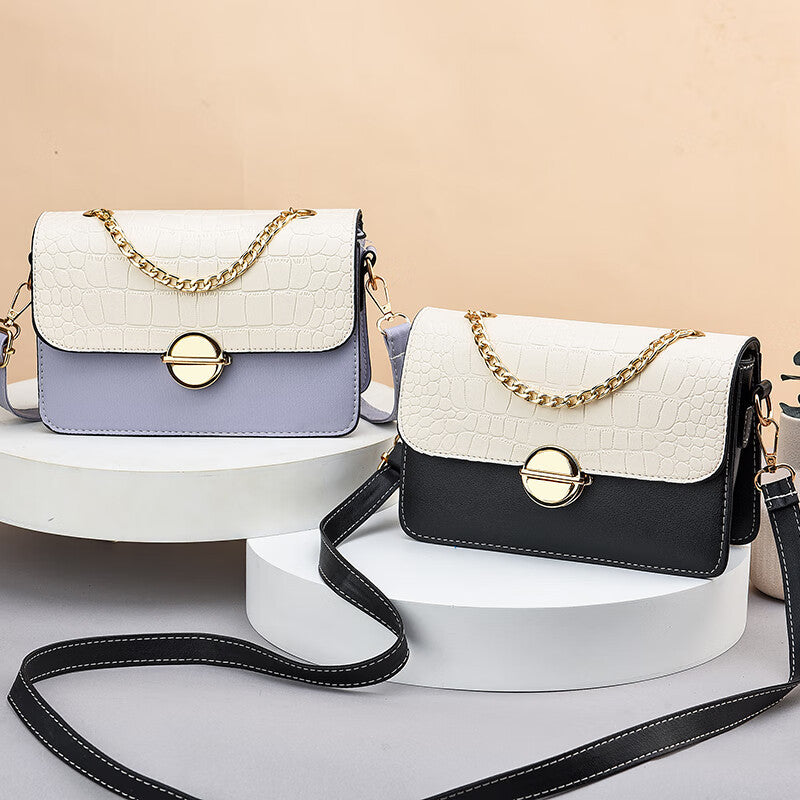 レディースバッグ牛革斜め掛けバッグカラーマッチングチェーンバッグファッションハンドバッグショルダーバッグ.ポシェット