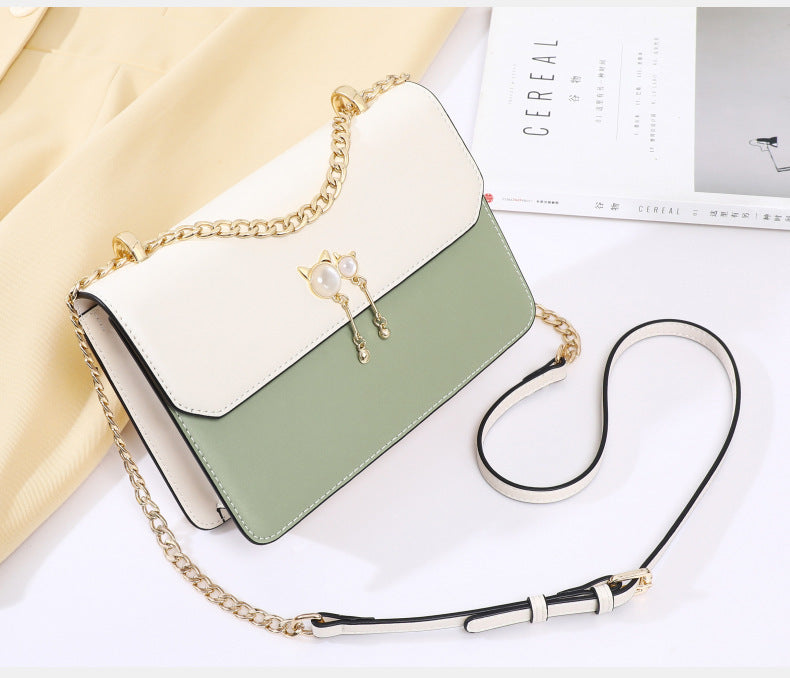 レディースバッグ高級感ショルダーバッグパールチェーン本革ファッションショルダーバッグ.ポシェット