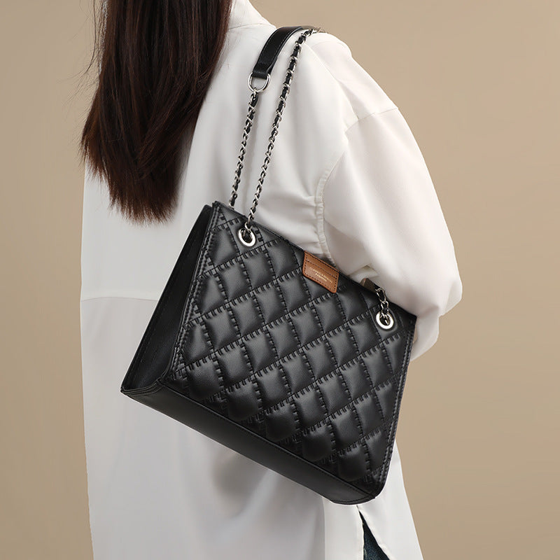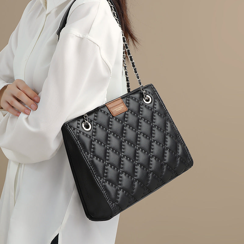 レディースバッグ高級感本革斜め掛けバッグチェーンバッグ大容量トートバッグチェック柄ショルダーバッグ.ポシェット
