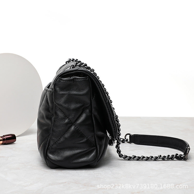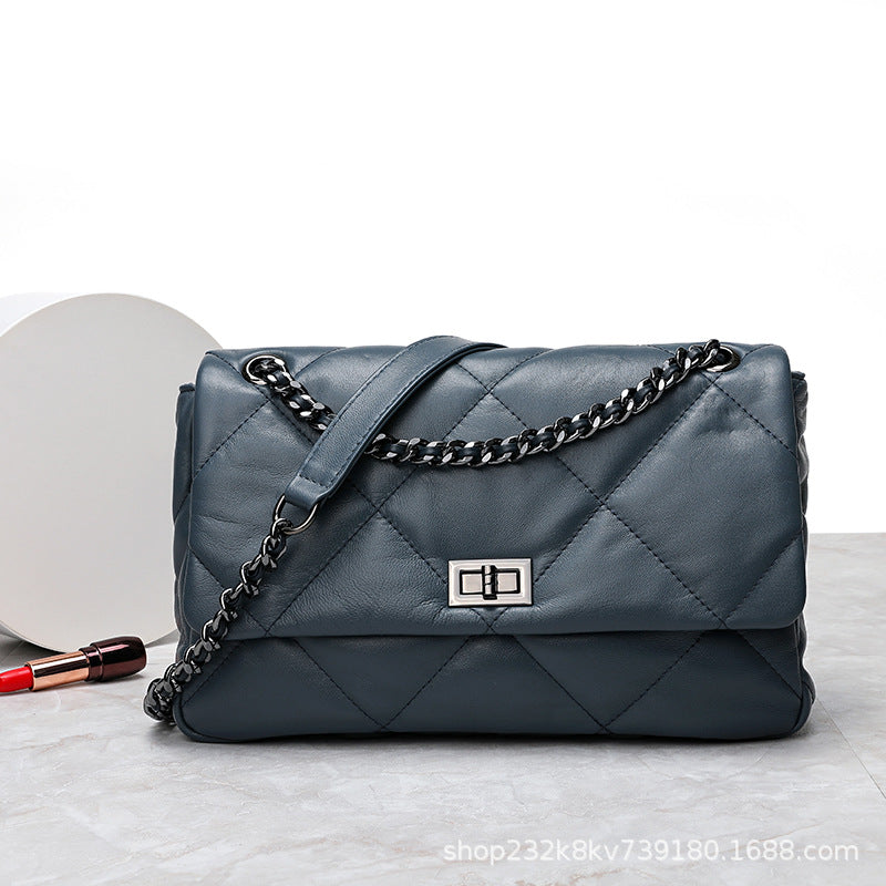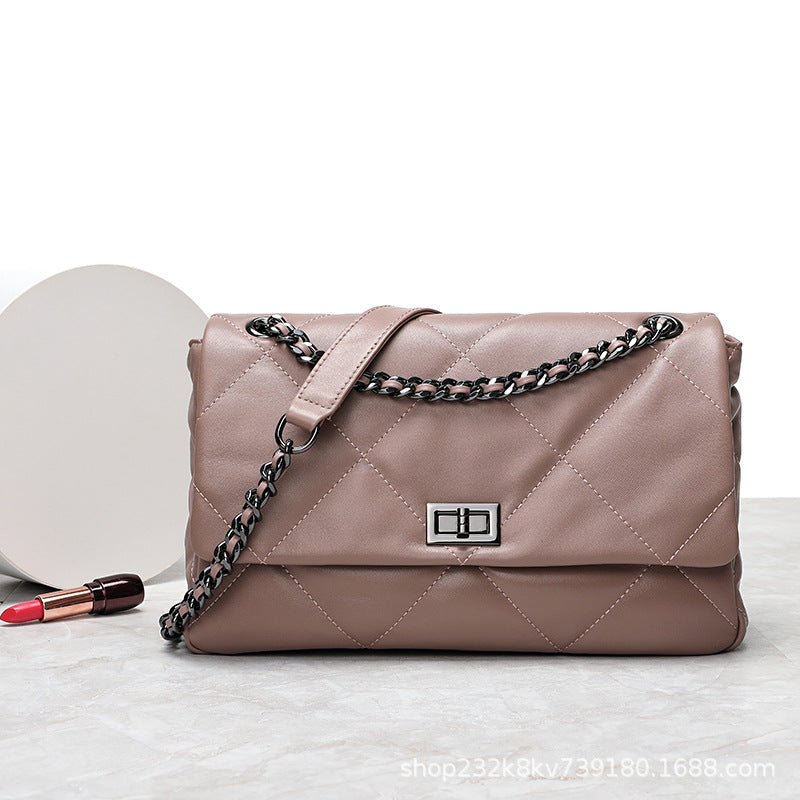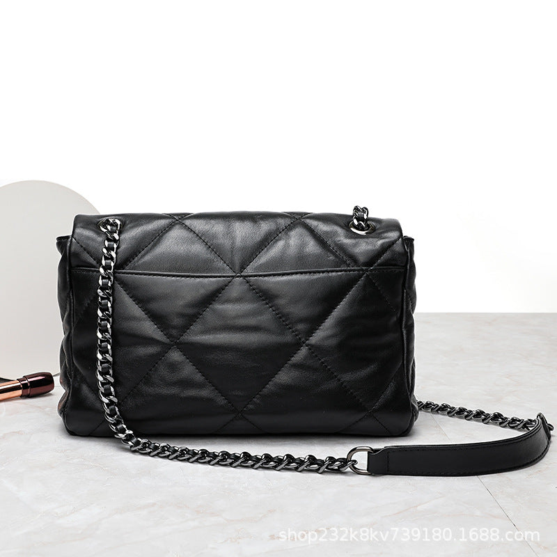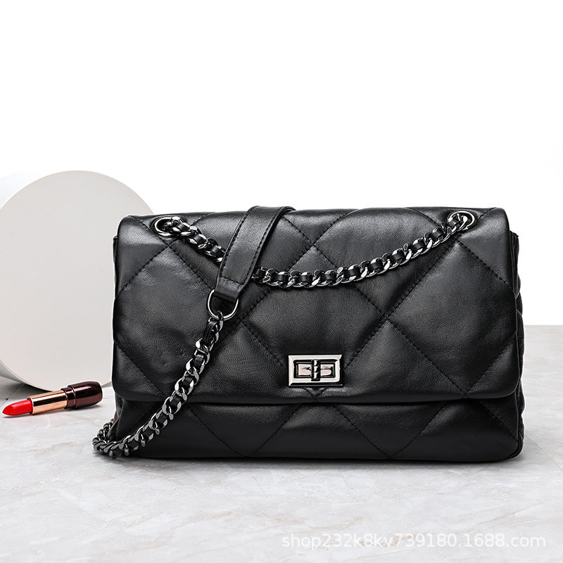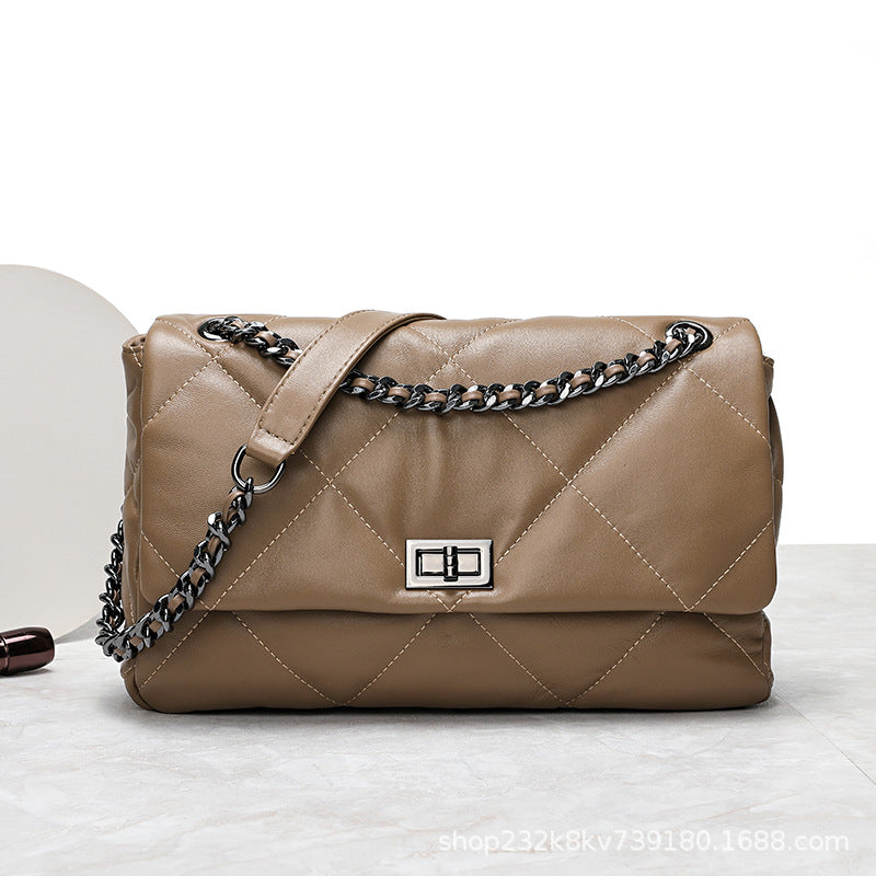 レディースヒツジ革チェーンバッグ高級質感カジュアル斜め掛けバッグ本革チェックエレガント ショルダーバッグ.ポシェット