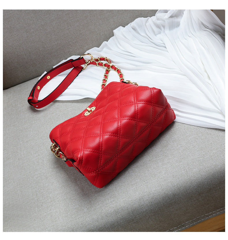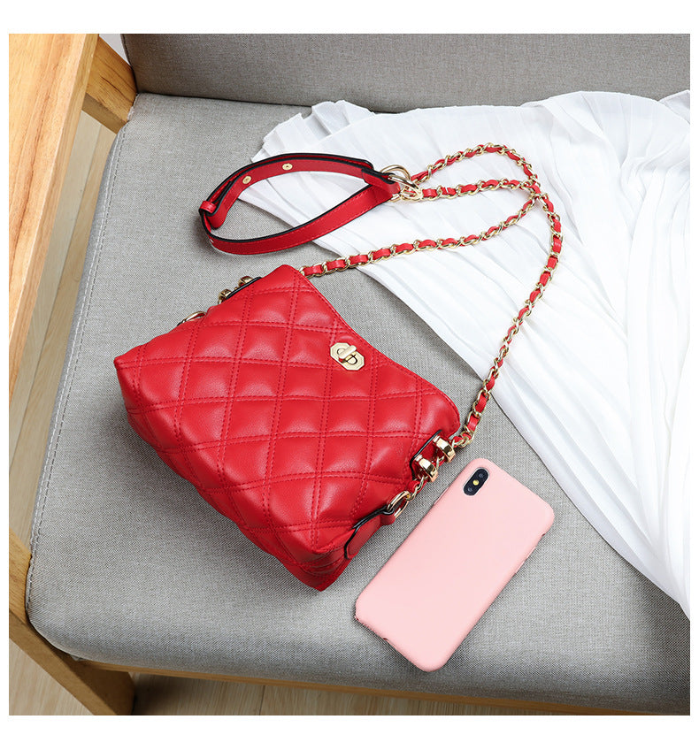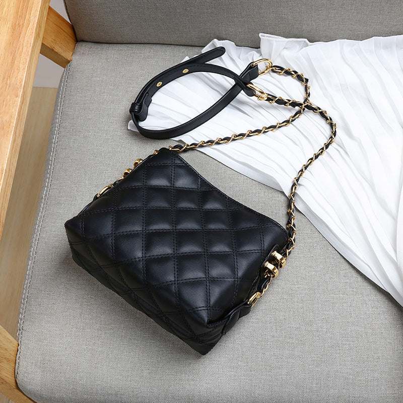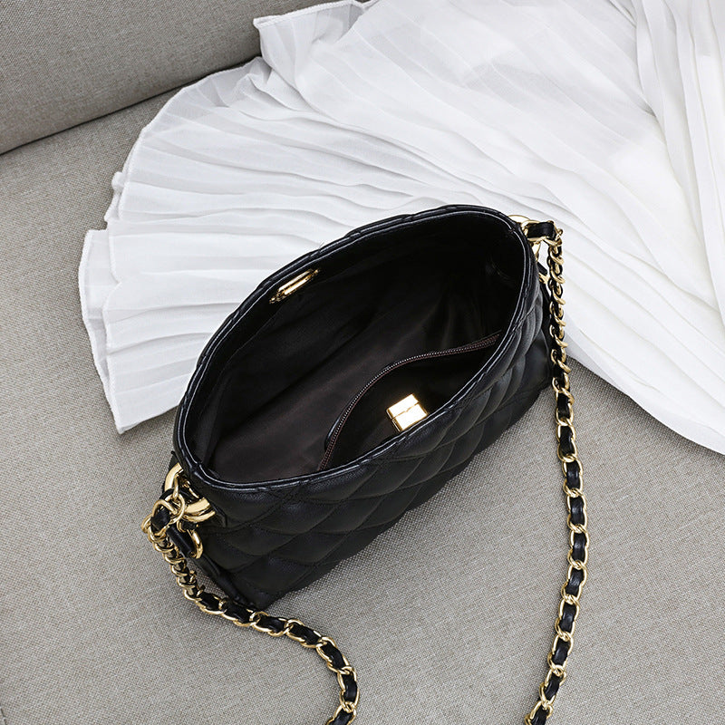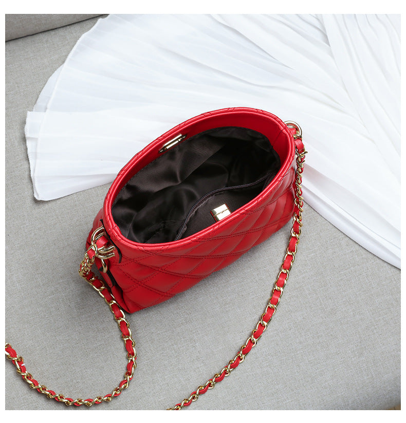 レディース本革斜め掛けバッグチェーンバッグわきの下バッグチェック柄何とでも合う流行ショルダーバッグ.ポシェット