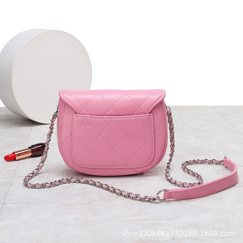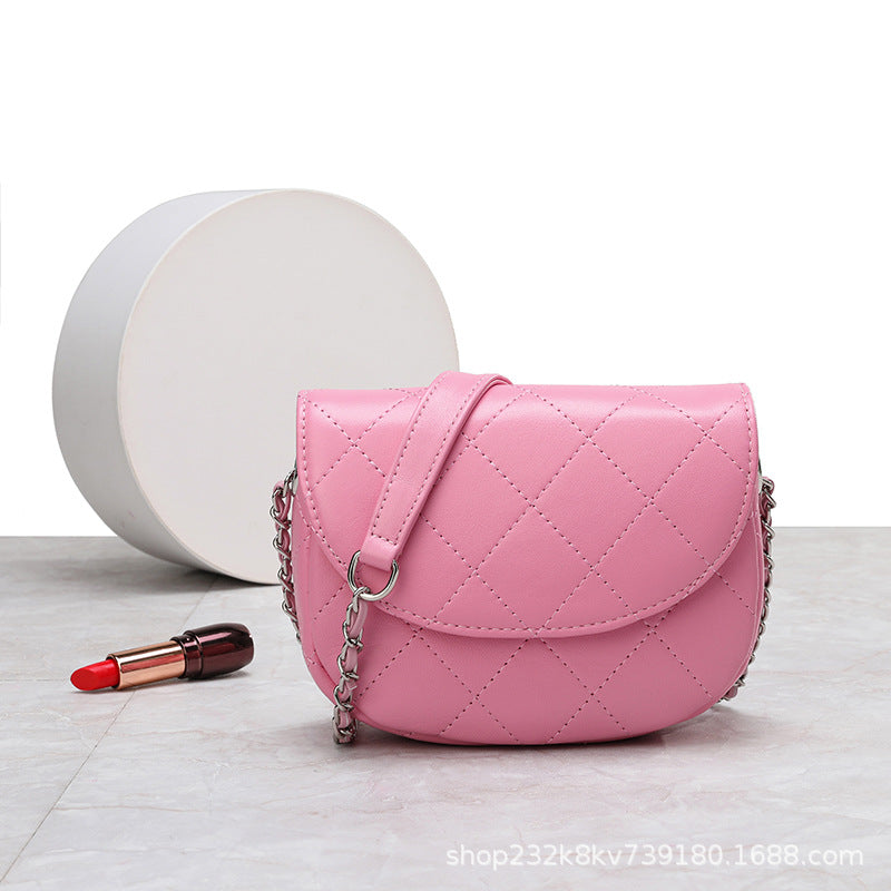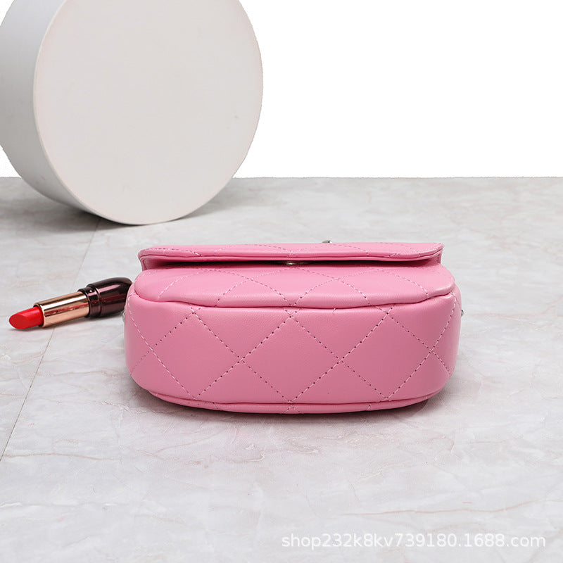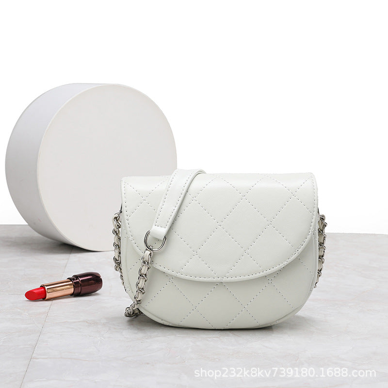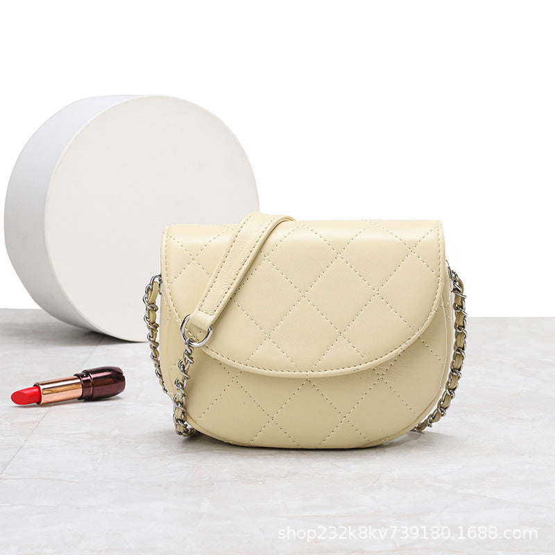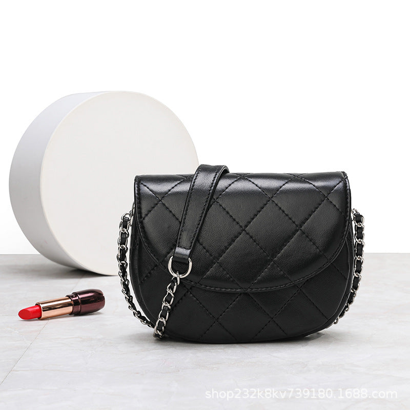レディース本革鞍バッグヒツジ革ファッション斜め掛けチェーンバッグチェックハーフムーンバッグショルダーバッグ.ポシェット