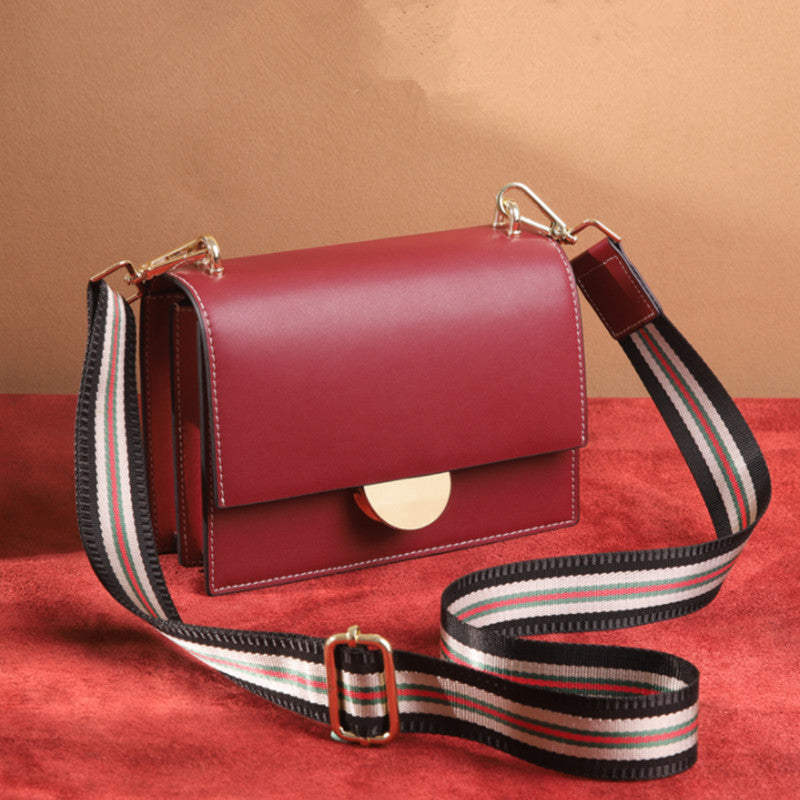 レディース牛革斜め掛けバッグファッションスクエアバッグブロードバンドシンプル何とでも合うショルダーバッグ.ポシェット