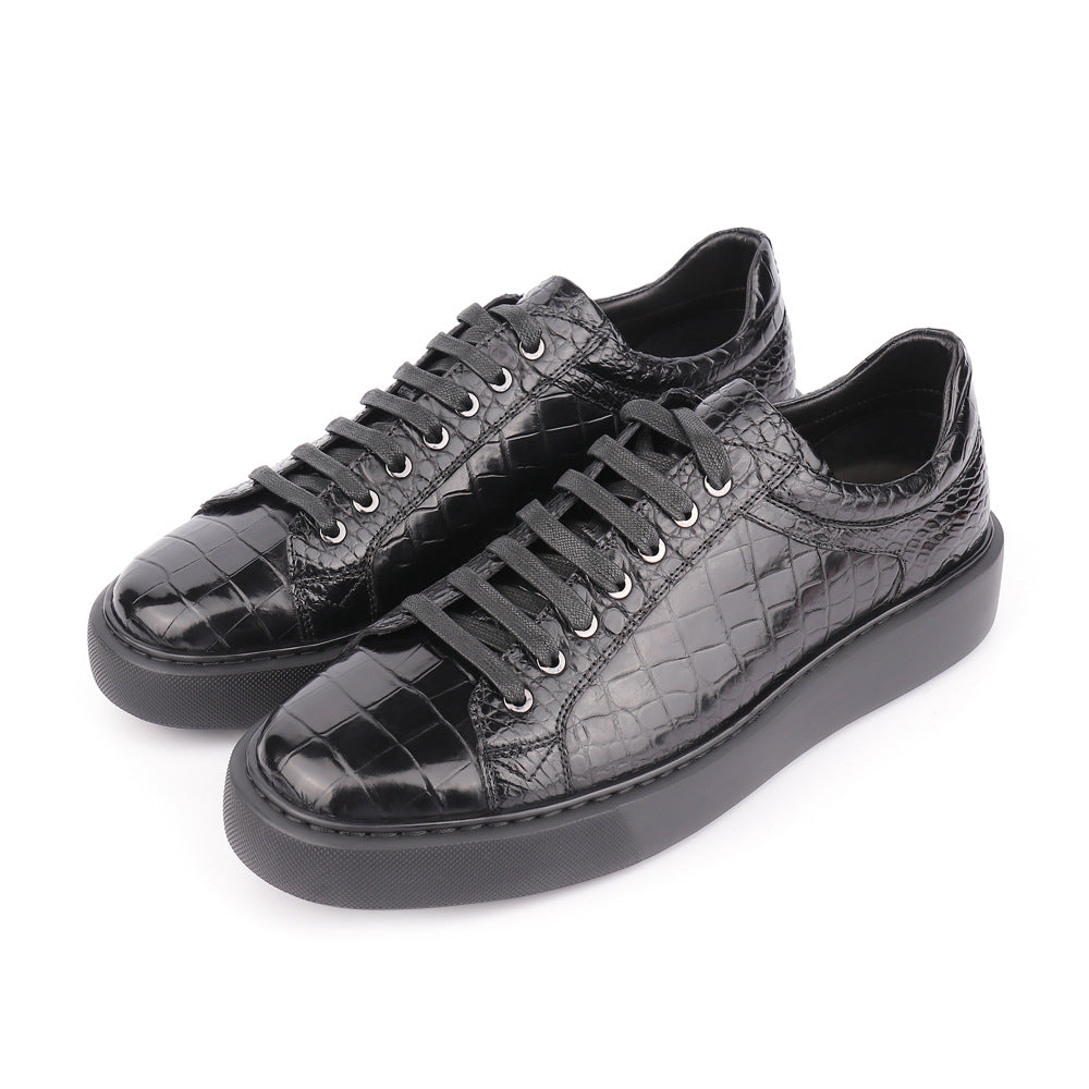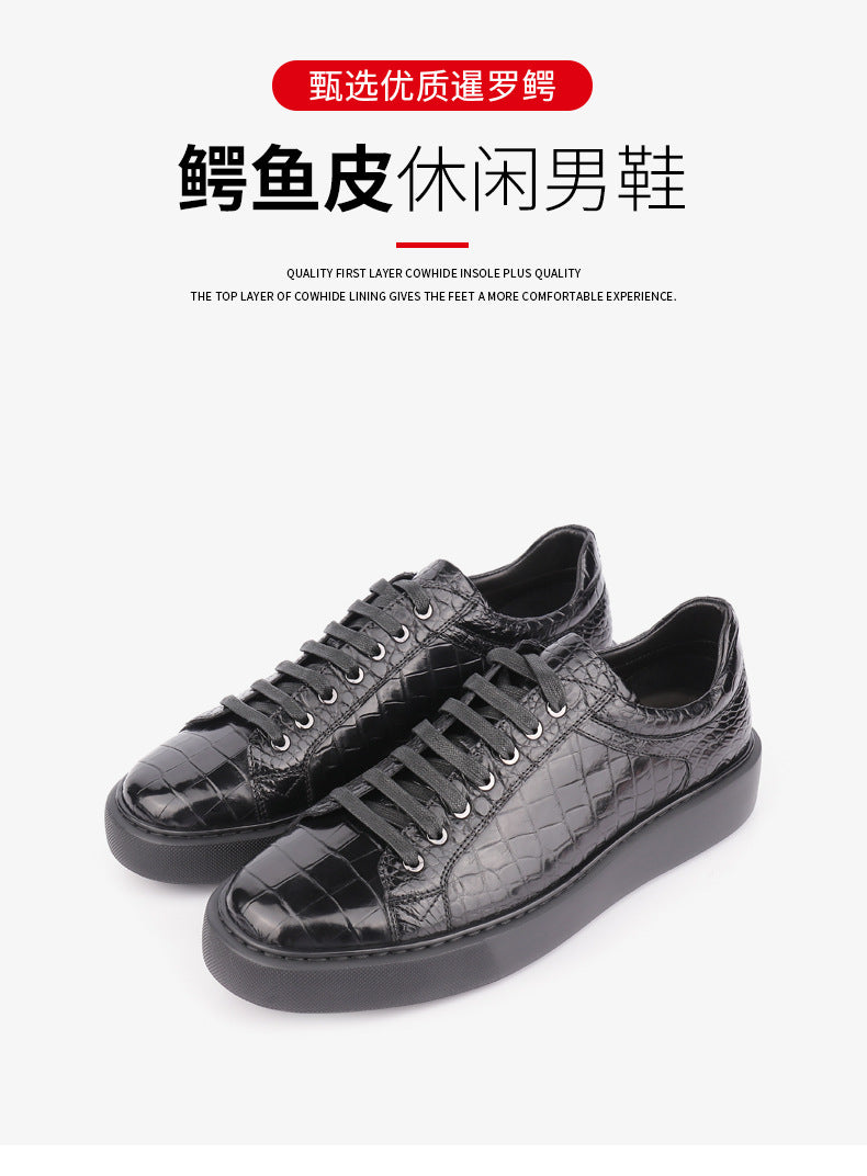 ワニ皮 本革製 メンズスニーカー スポーツカジュアル運動靴 シンプルファッション耐摩耗男性靴