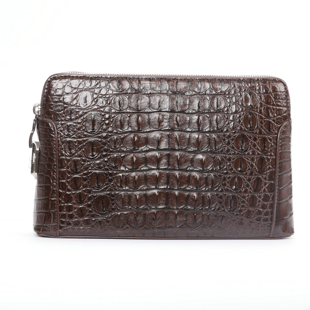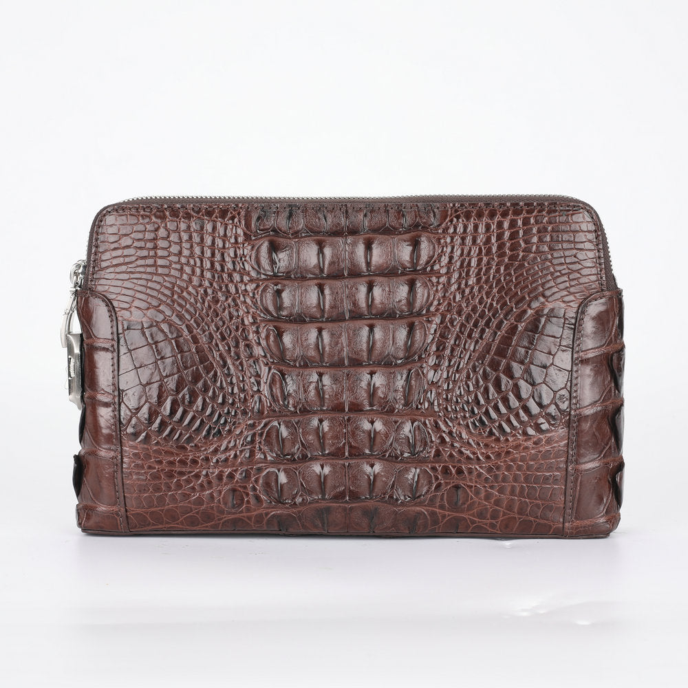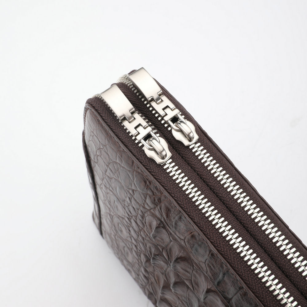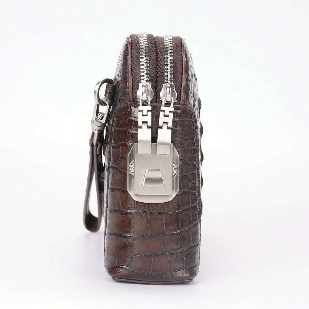 ワニ皮 本革 男性用ハンドバッグ ダブルファスナー セキュリティロック ビジネスカ ジュアルメンズバッグ