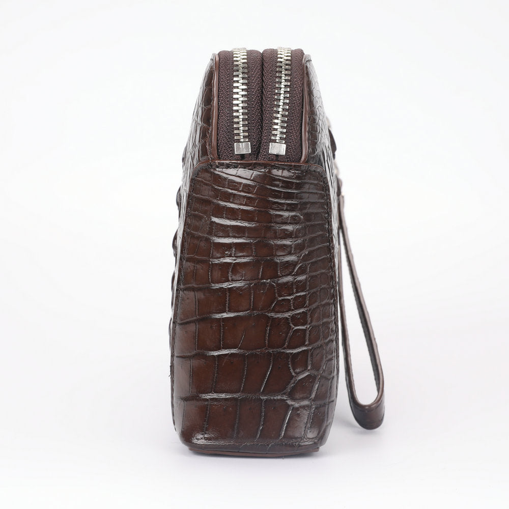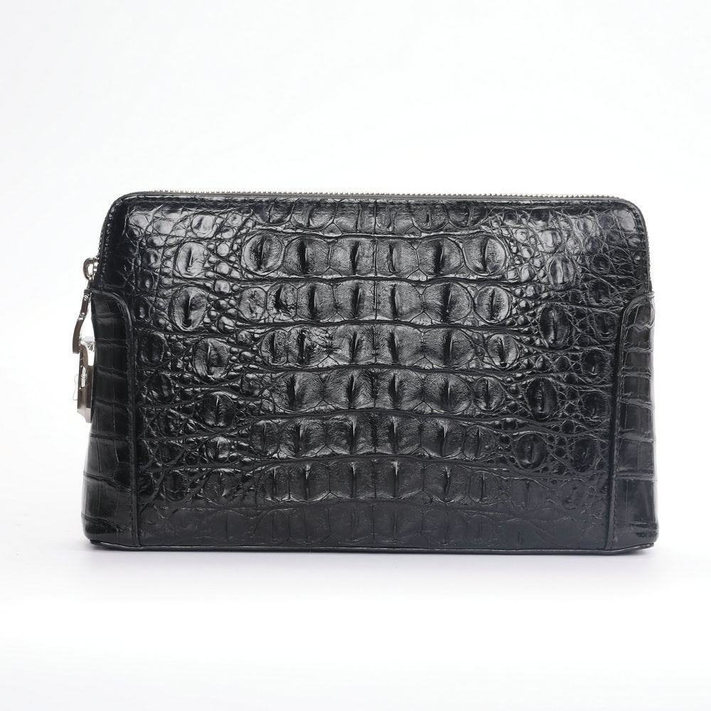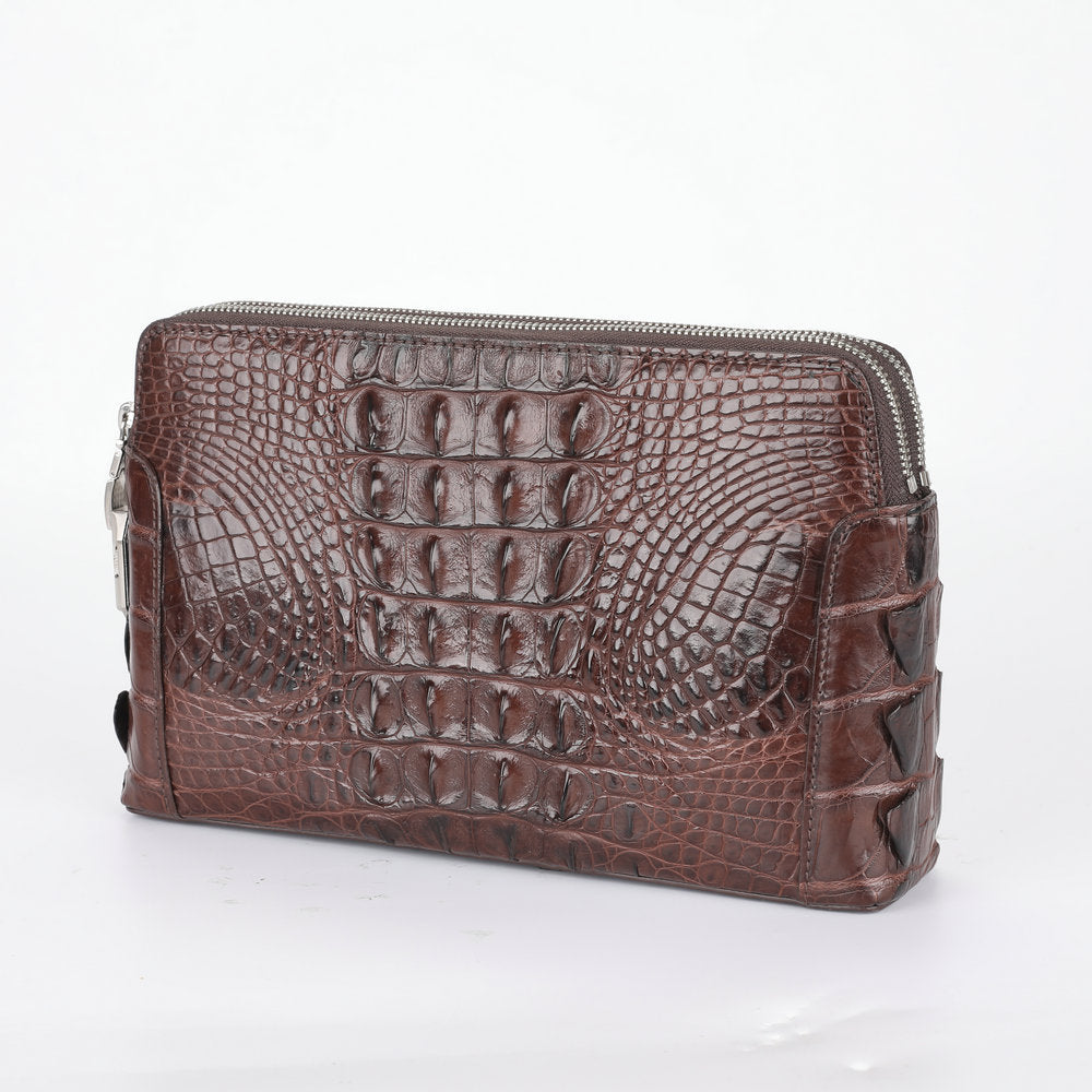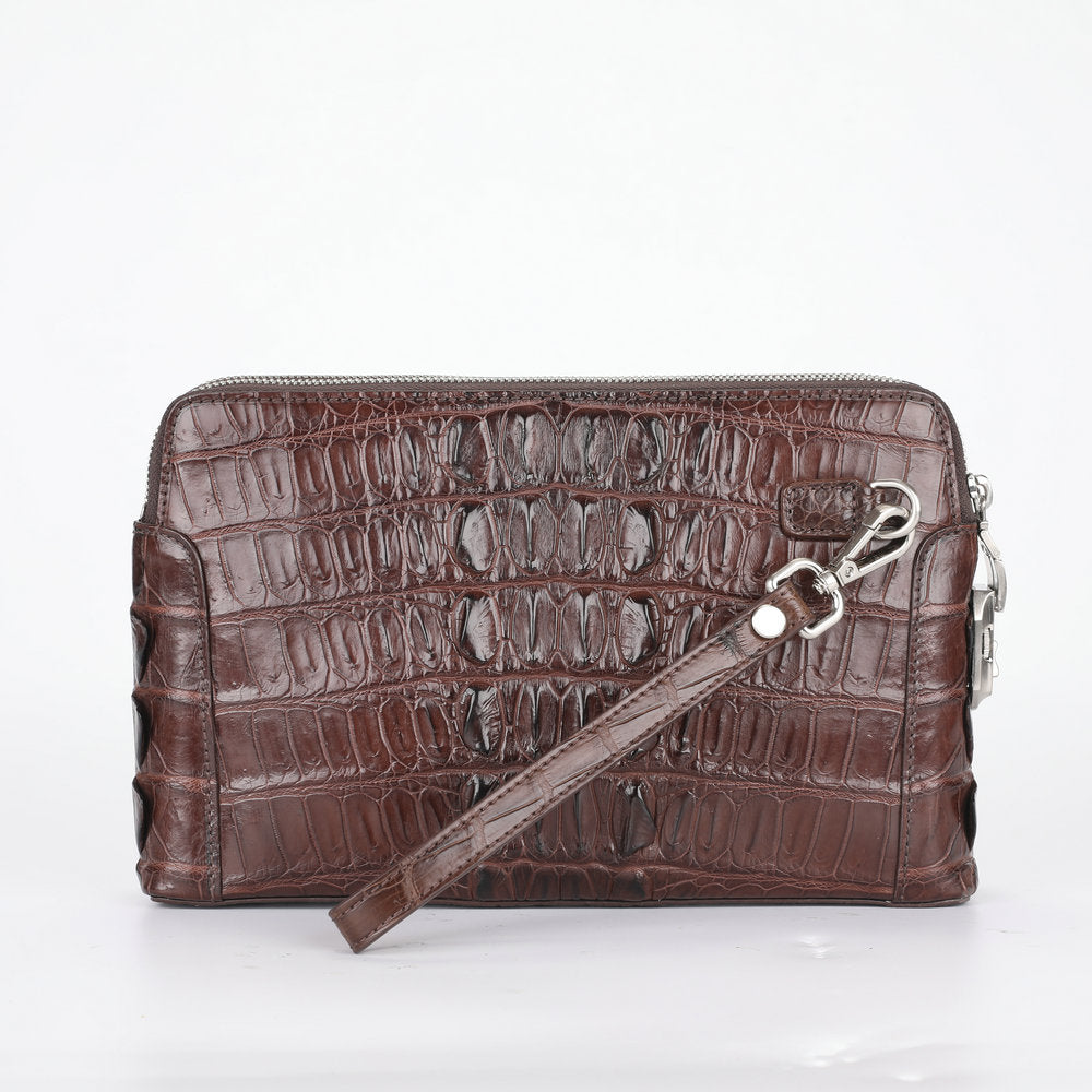 ワニ皮 本革 男性用ハンドバッグ ダブルファスナー セキュリティロック ビジネスカ ジュアルメンズバッグ