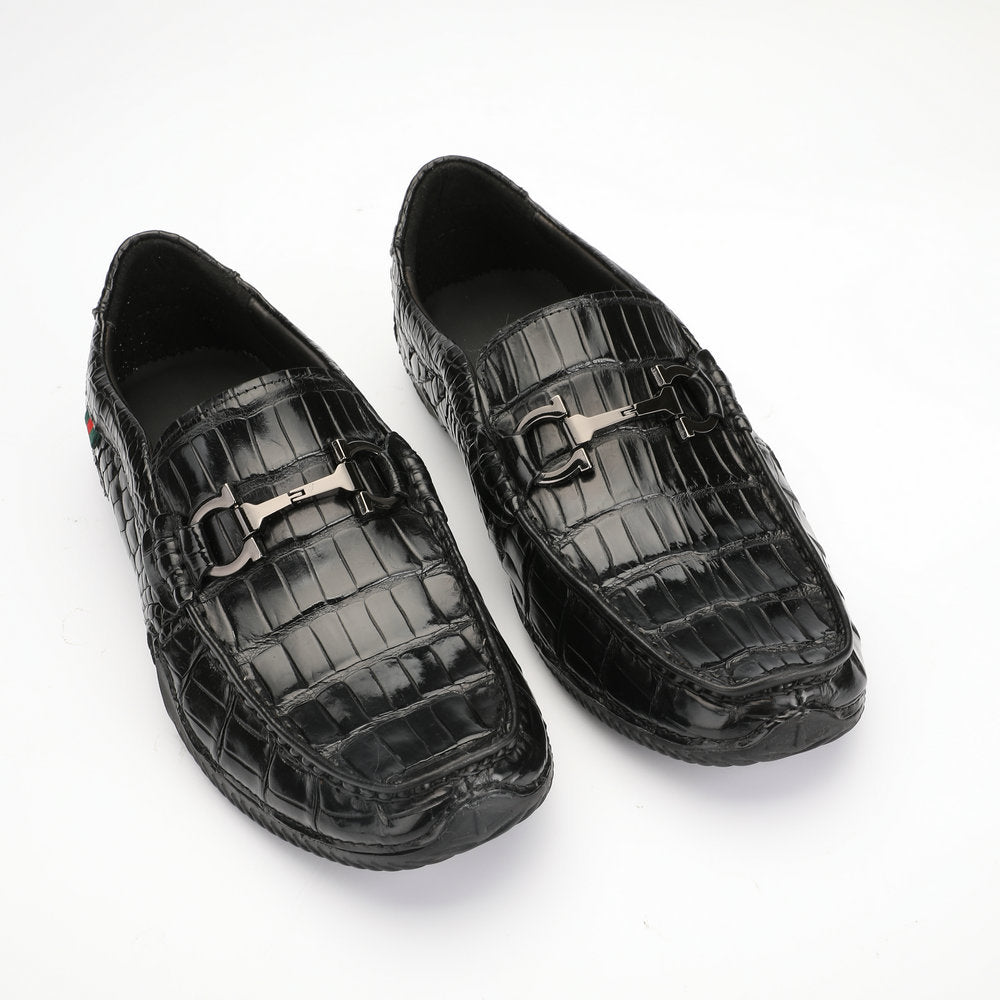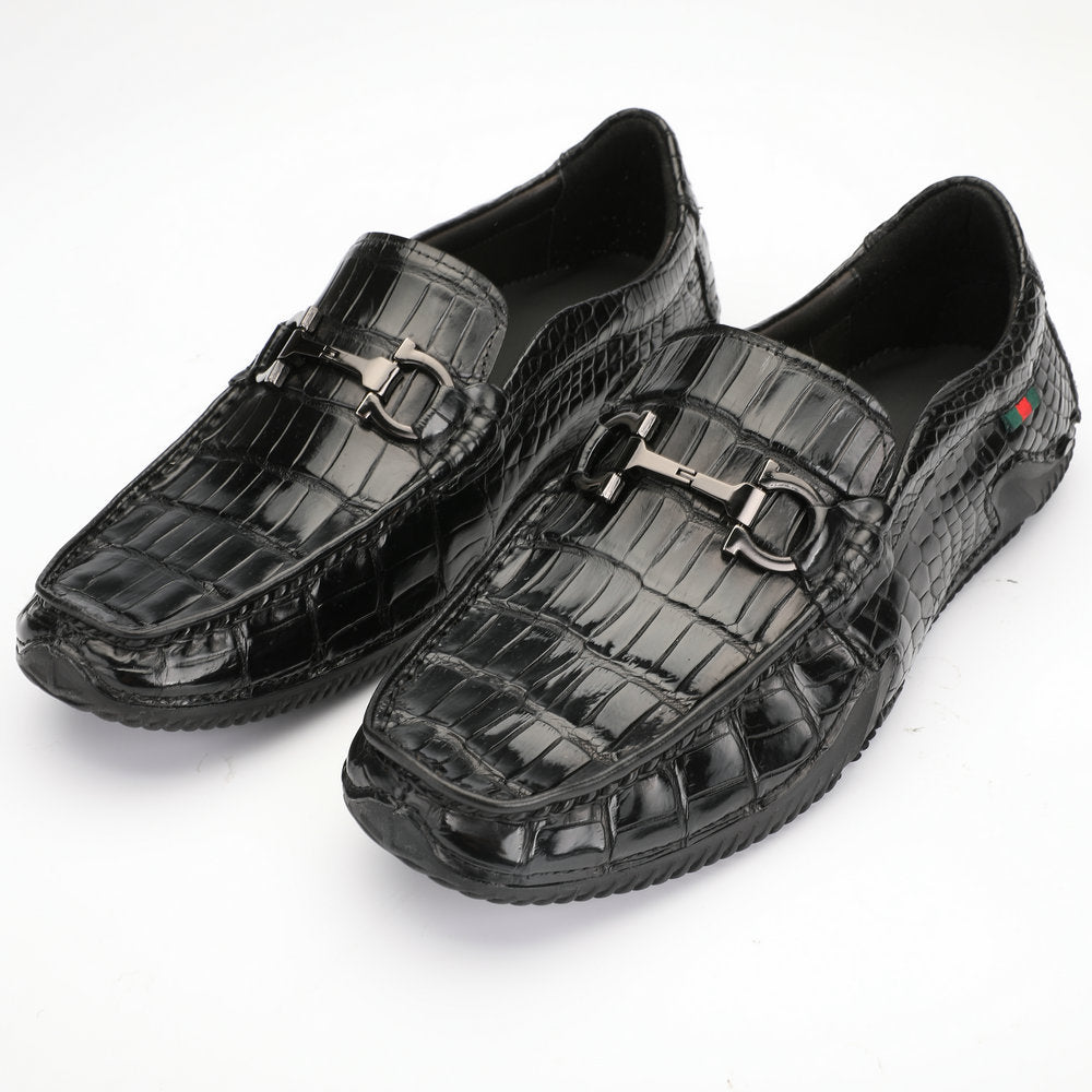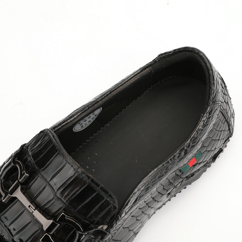 ワニ腹の皮 本革製 メンズ革靴 モカシン カジュアルローファー シューズ