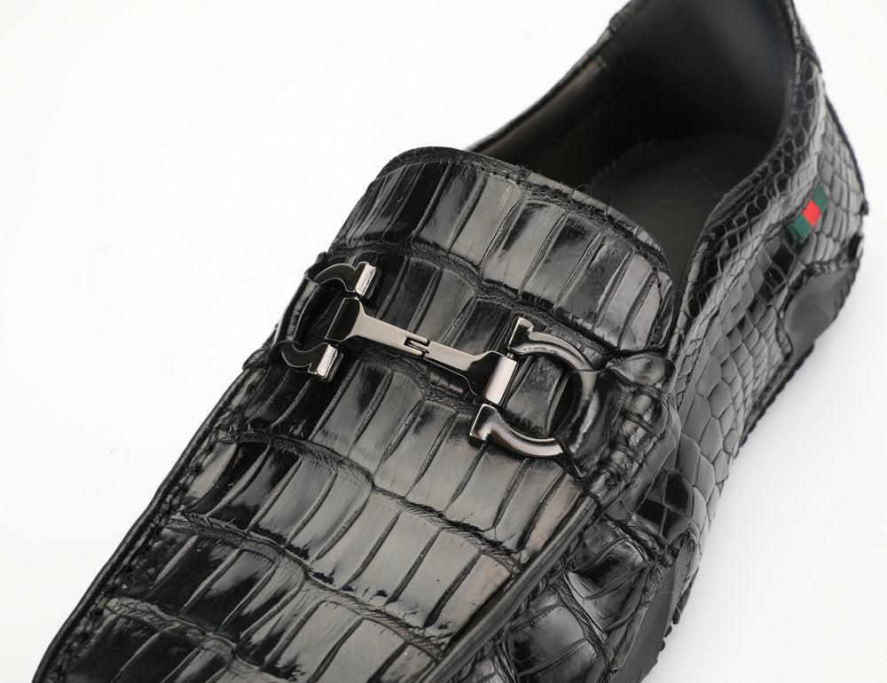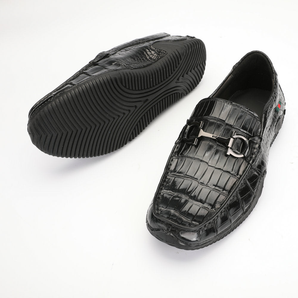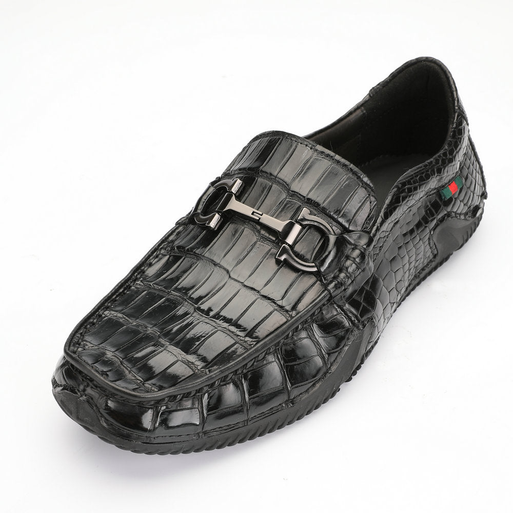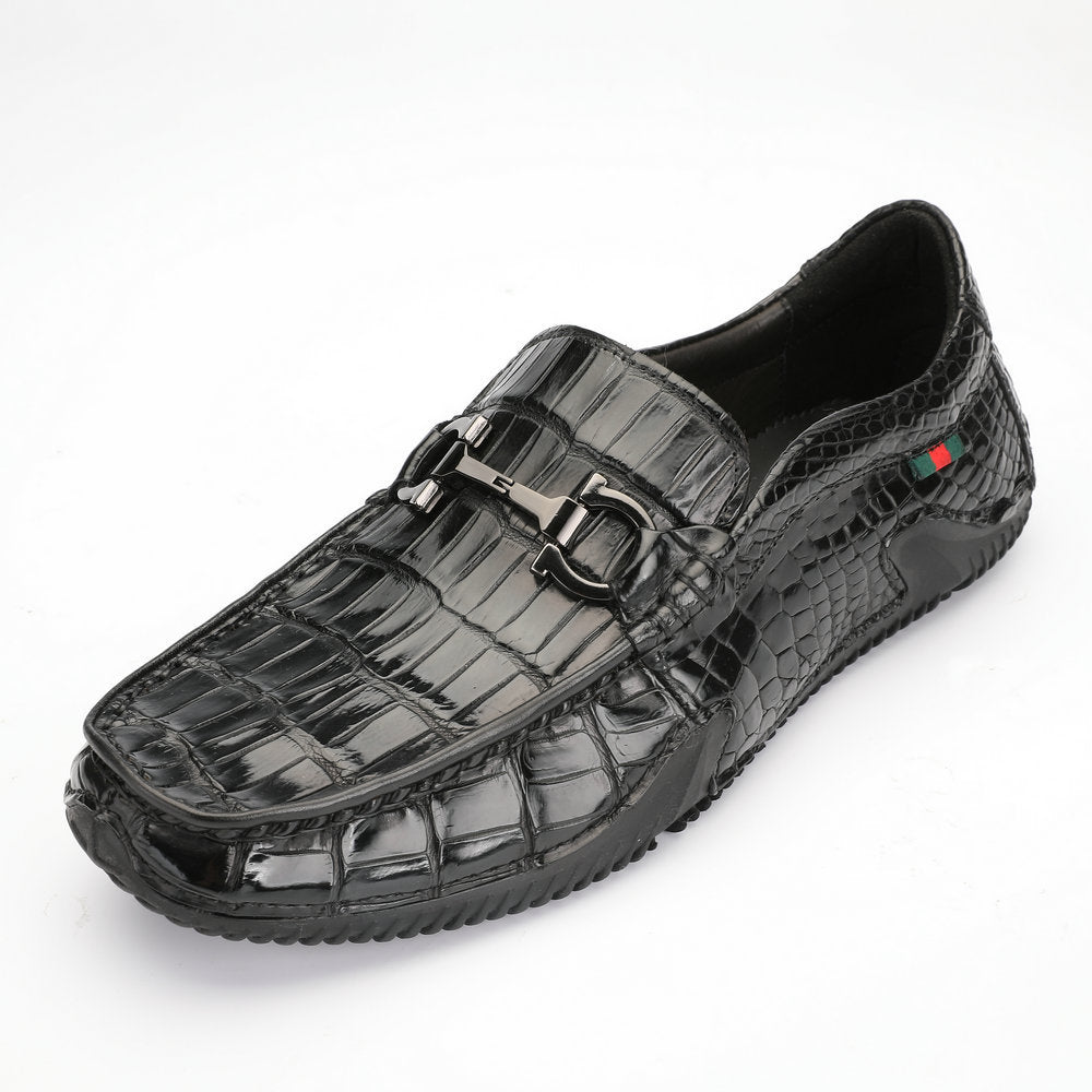 ワニ腹の皮 本革製 メンズ革靴 モカシン カジュアルローファー シューズ