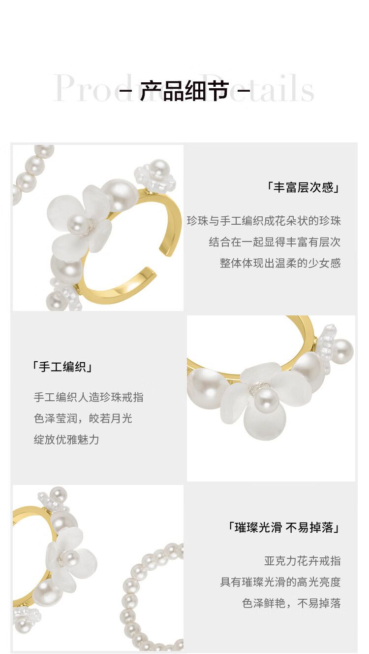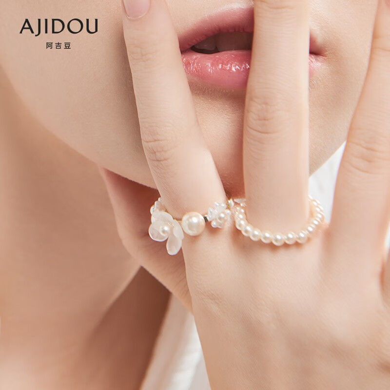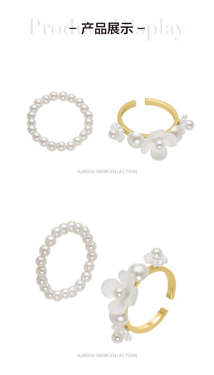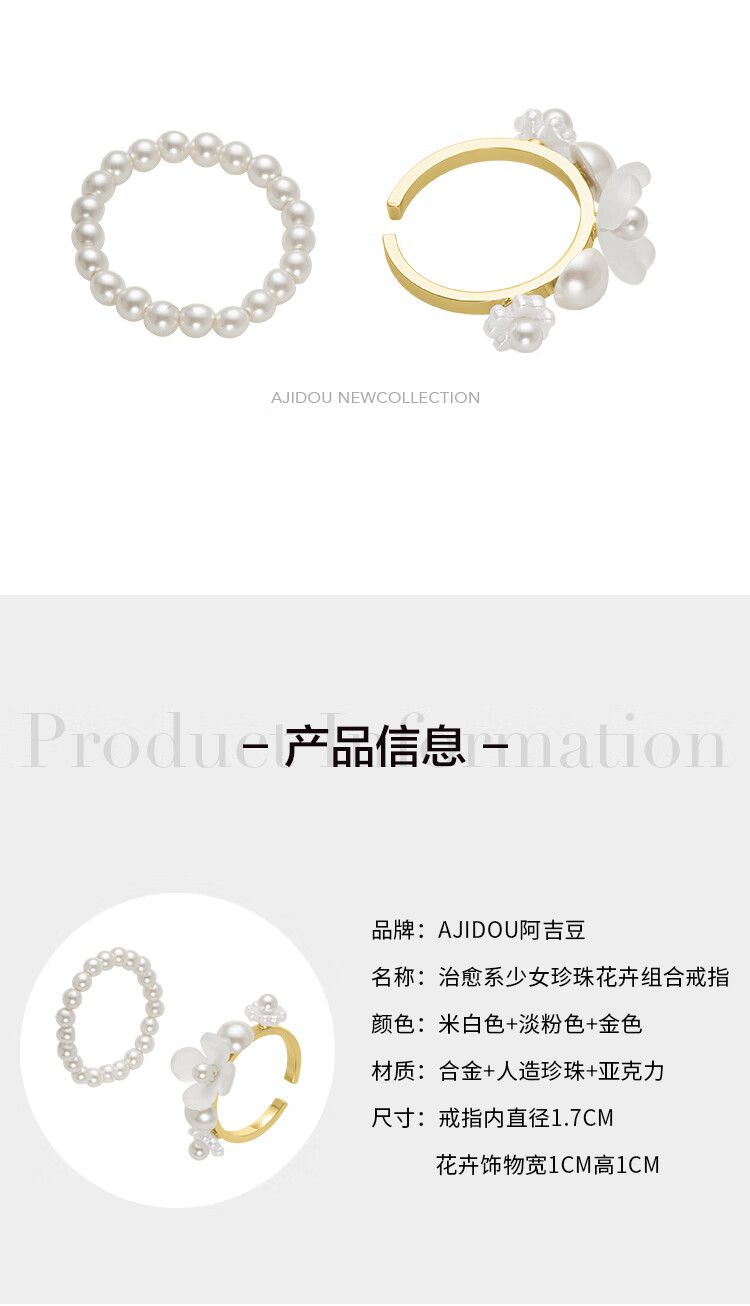 AJIDOU乙女の組み合わせパールフラワーリング柔らかでエレガントな指輪贈り物