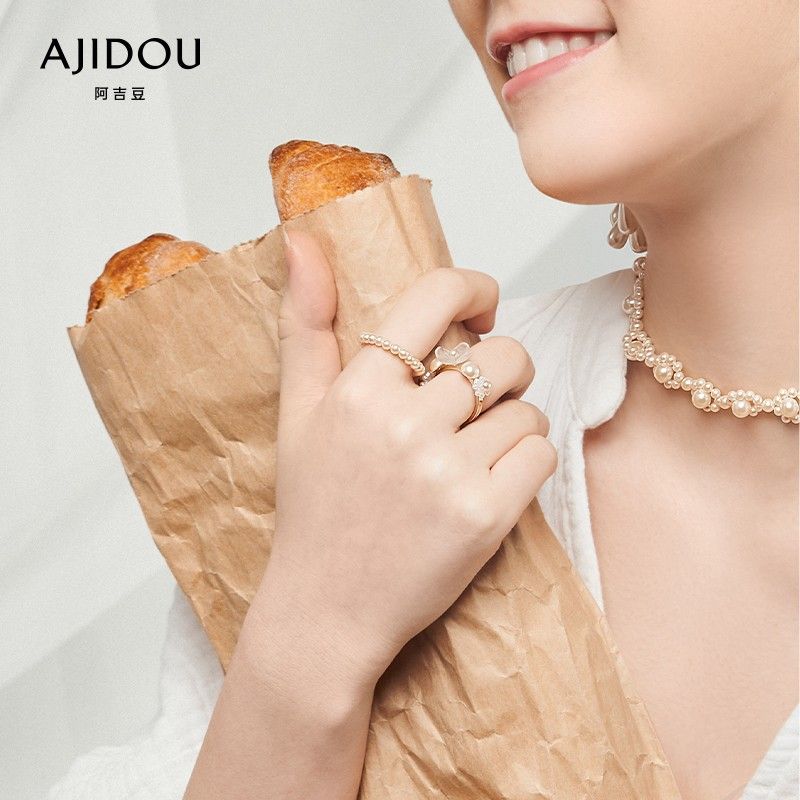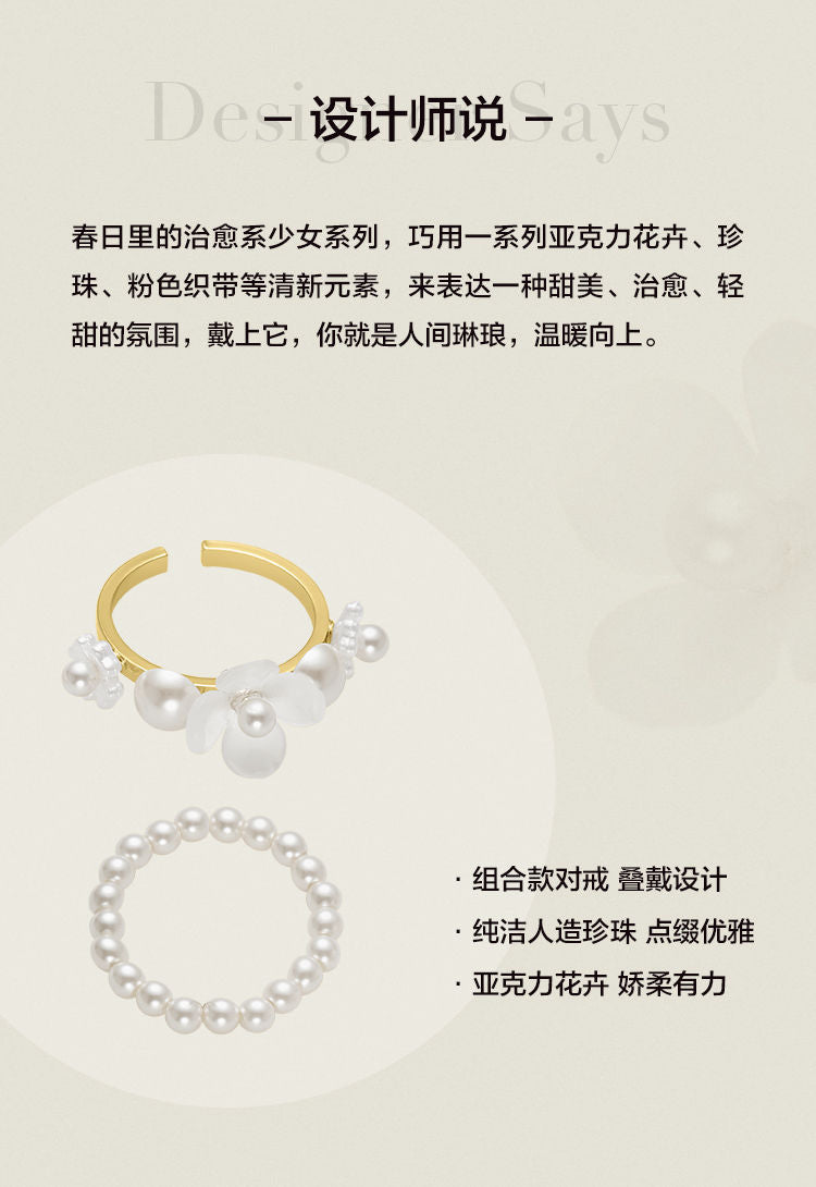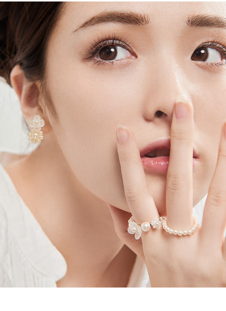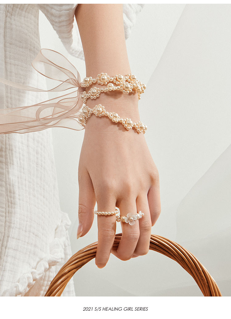 AJIDOU乙女の組み合わせパールフラワーリング柔らかでエレガントな指輪贈り物