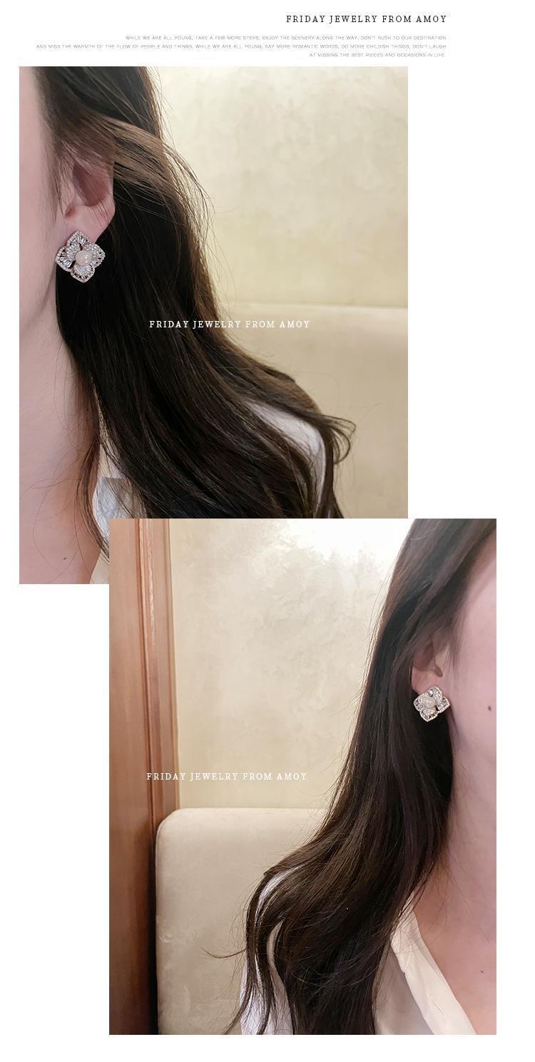 四つ葉クローバーFRIDAY JEWELRYパールフレンチ贅沢レトロムードフラワーピアス