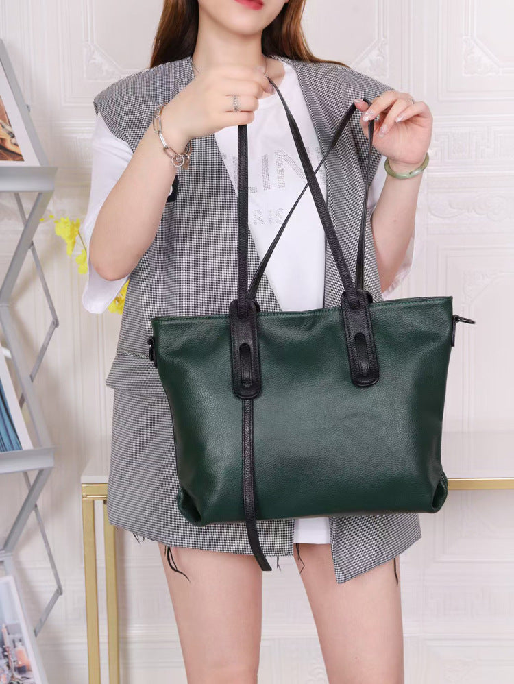 2022新款潮时尚软皮单肩托特包 大容量头层牛皮真皮大包斜挎包女