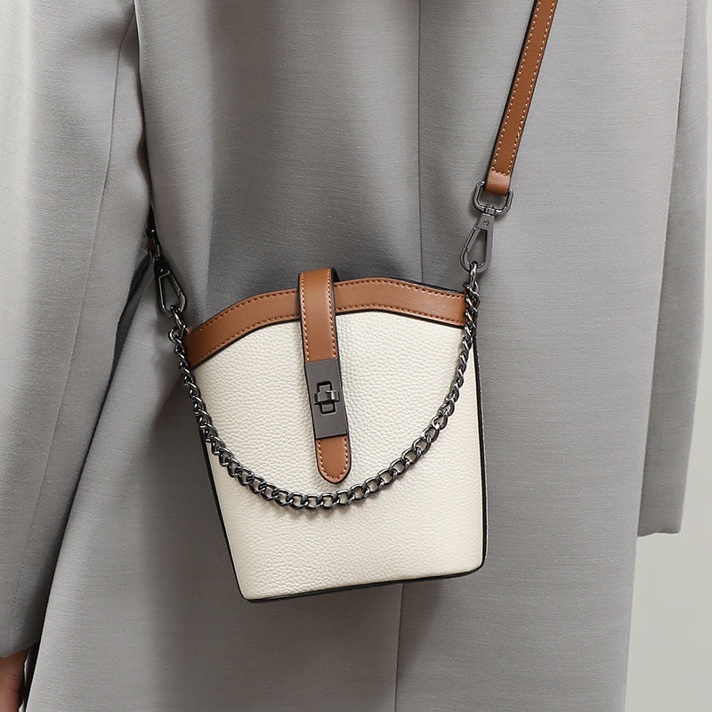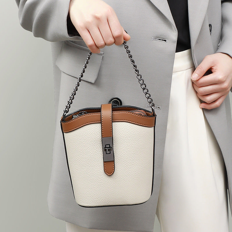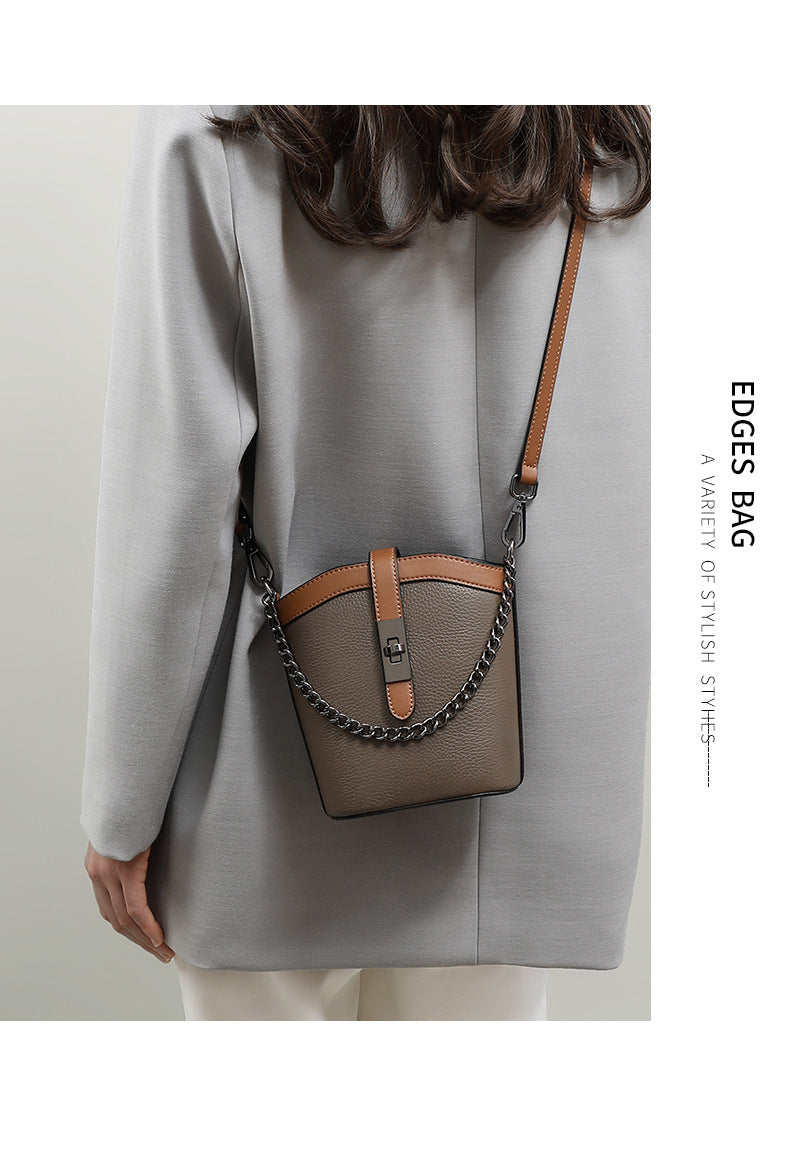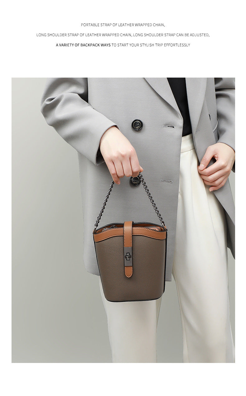 斜め掛けバッグバケツバッグレディースバッグ本革チェーンバッグカラーマッチングレトロショルダーバッグ.ポシェット