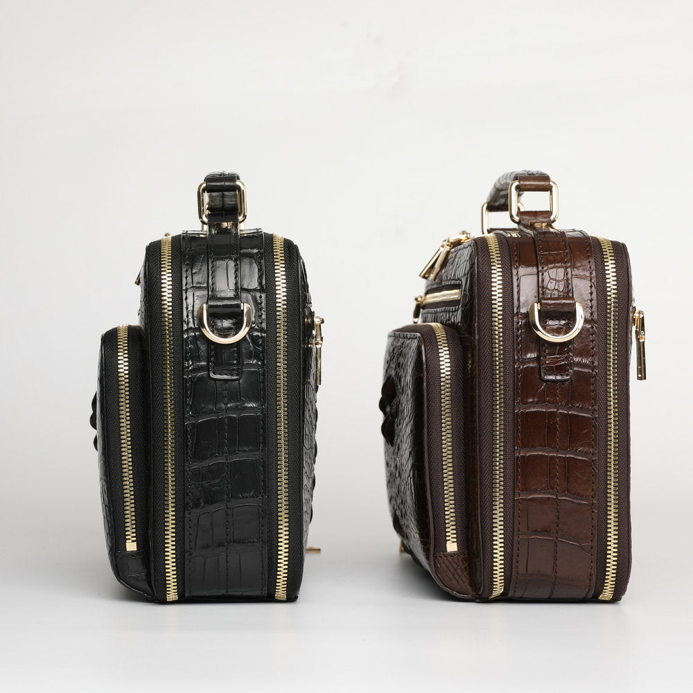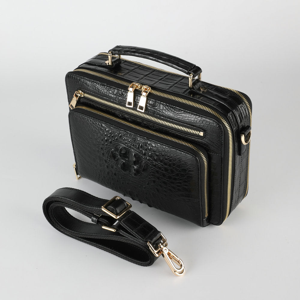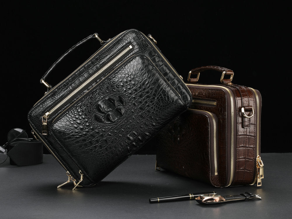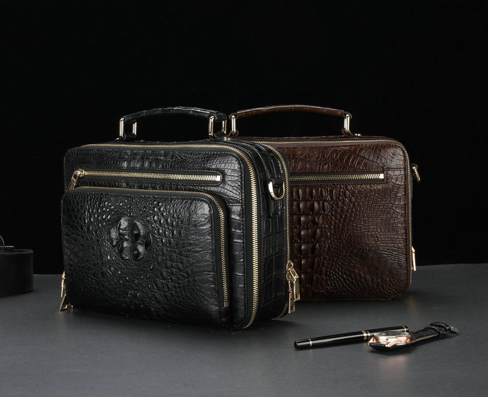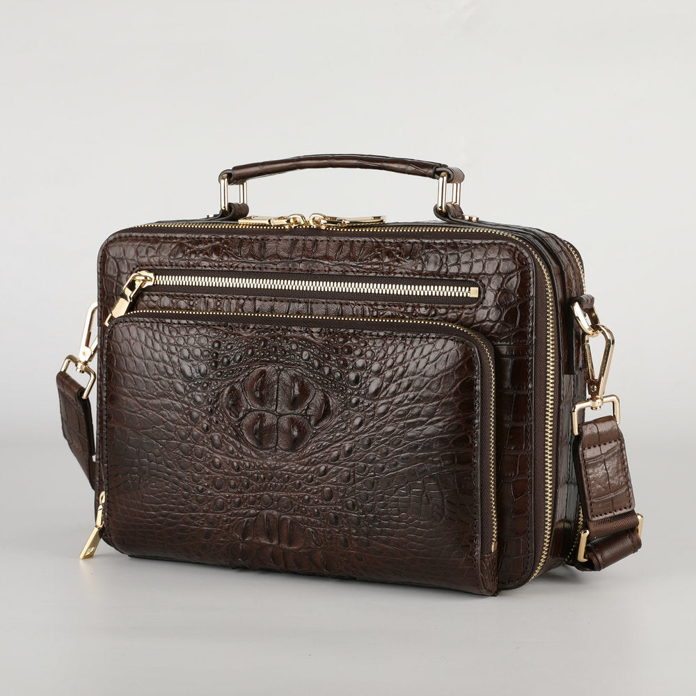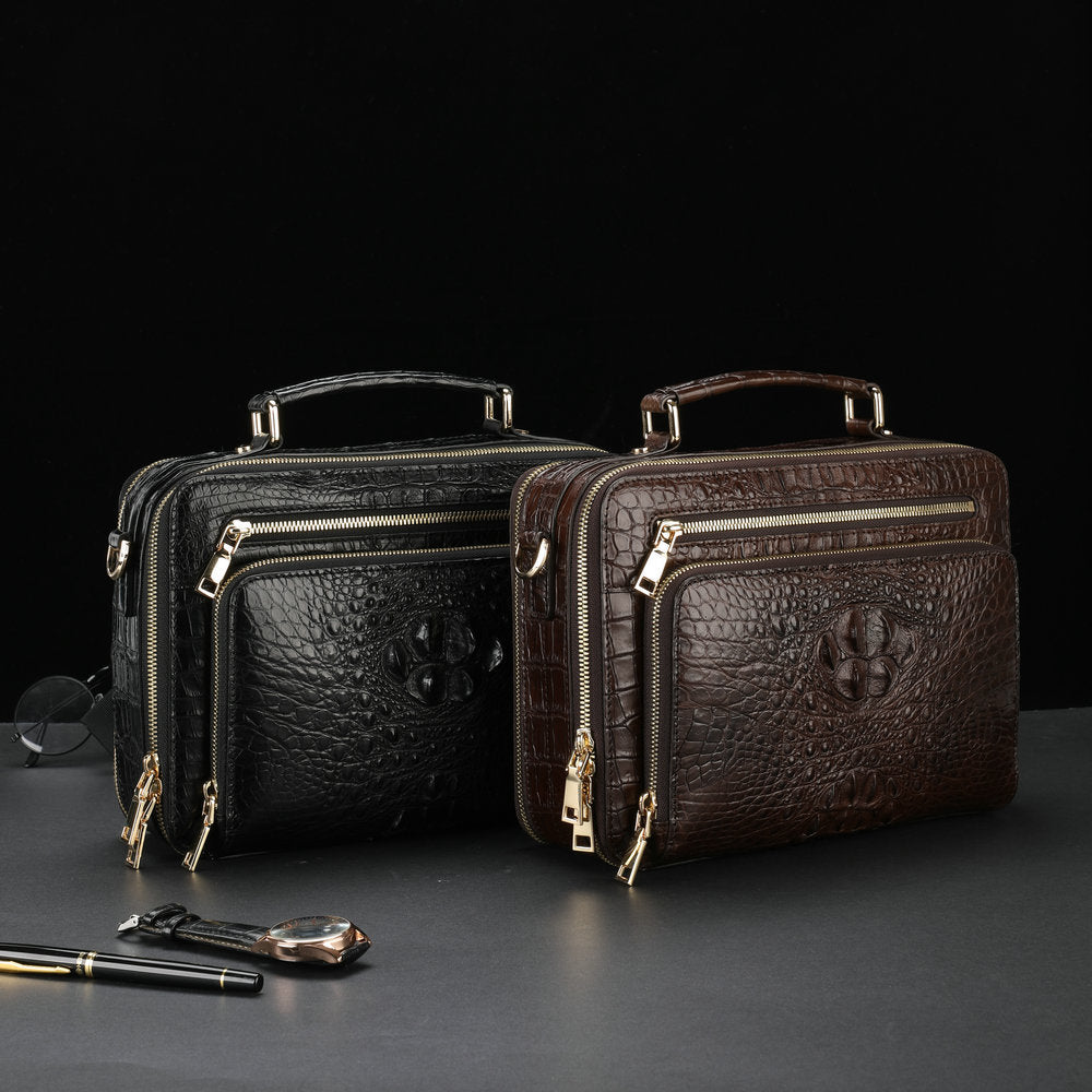 新品シャムワニ皮 メンズバッグ 本革 おしゃれ 通勤ビジネスバッグ 多機能ショルダーバッグ 斜めがけバッグ ハンドバッグ