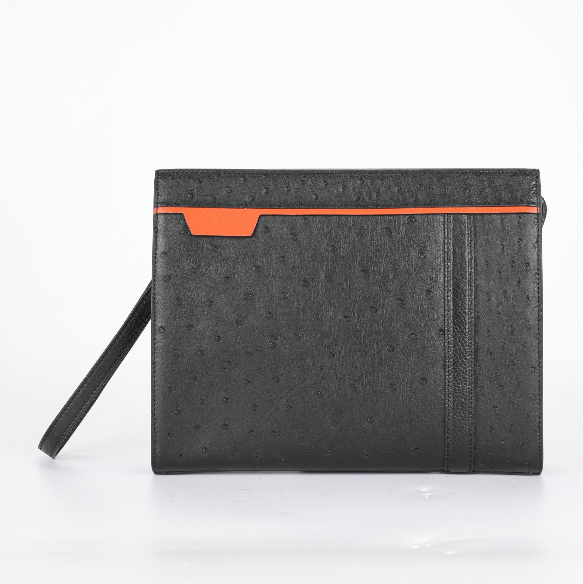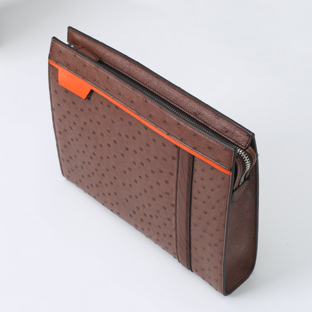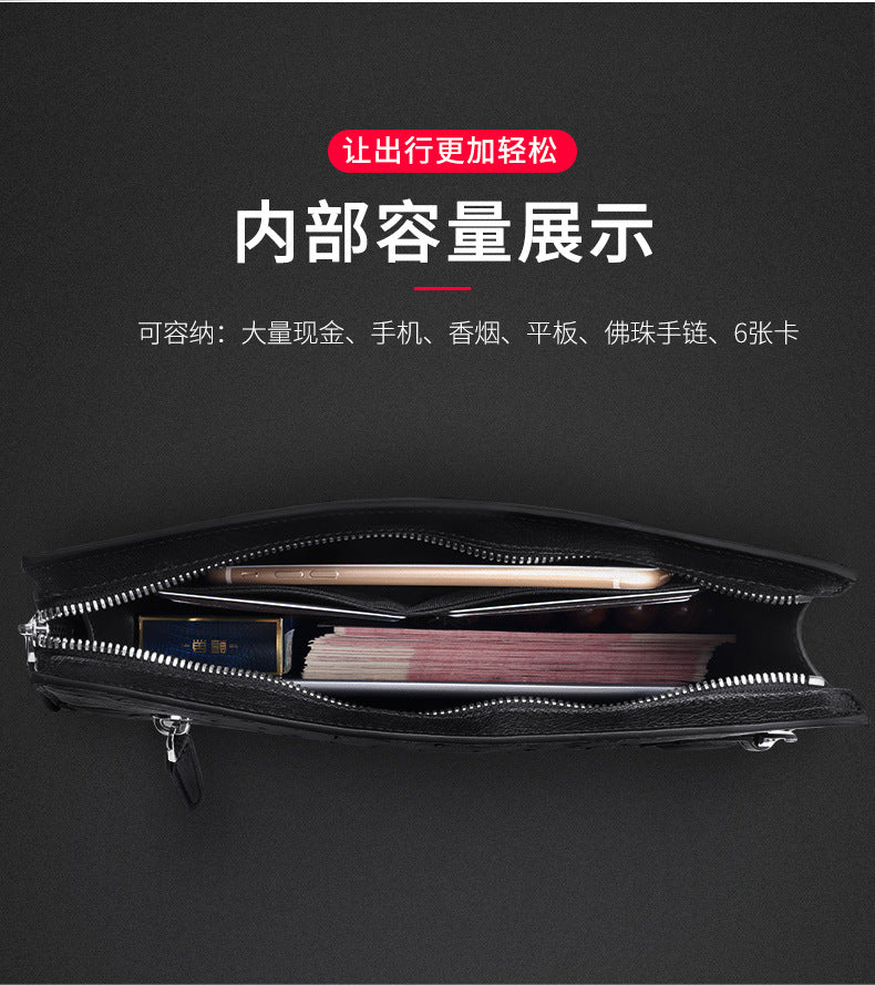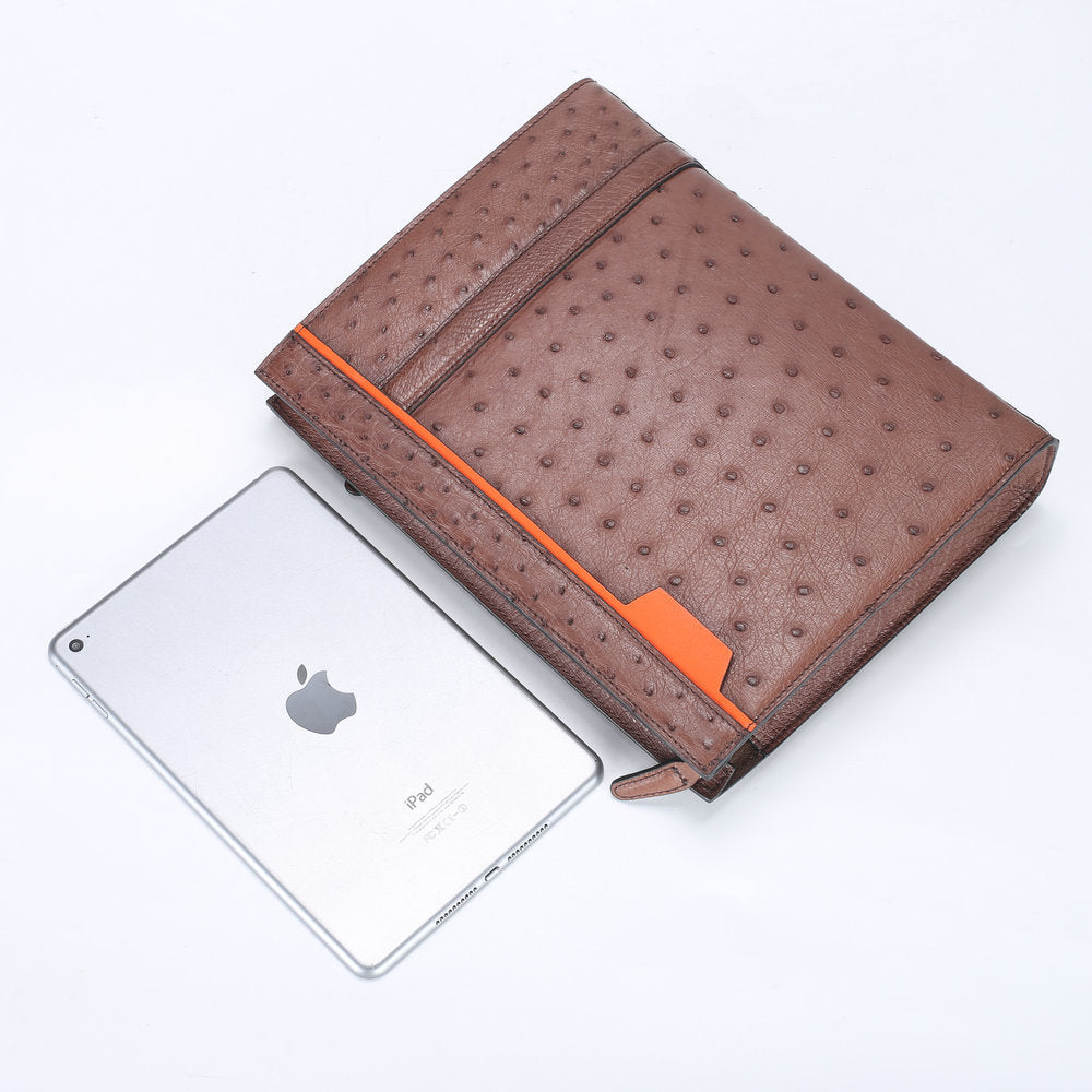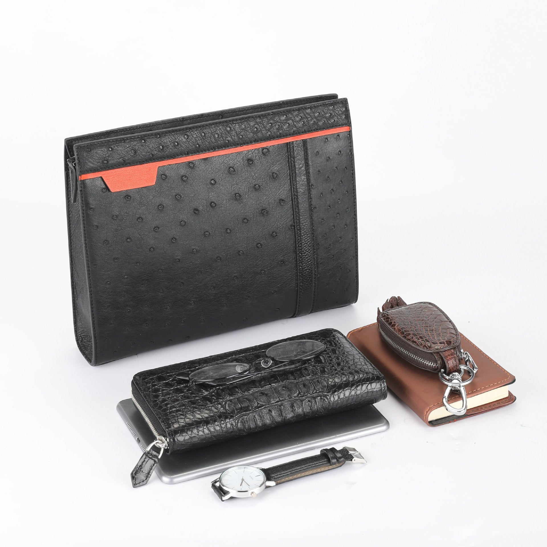 新型ダチョウの皮本革メンズハンドバッグビジネス カジュアル高品質メンズバッグ