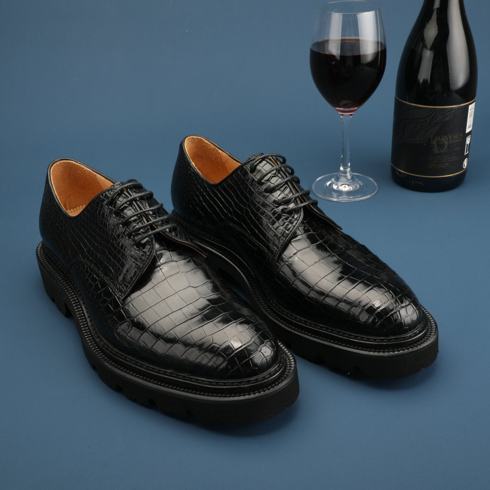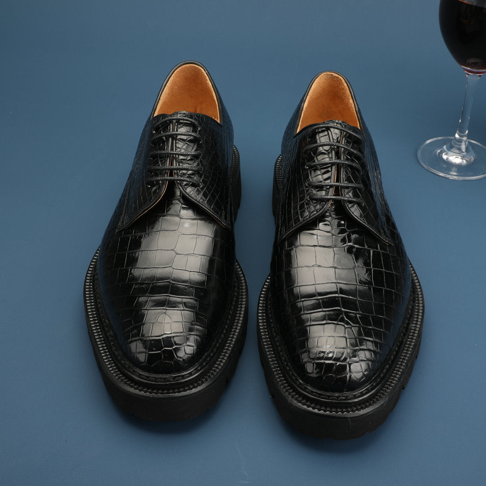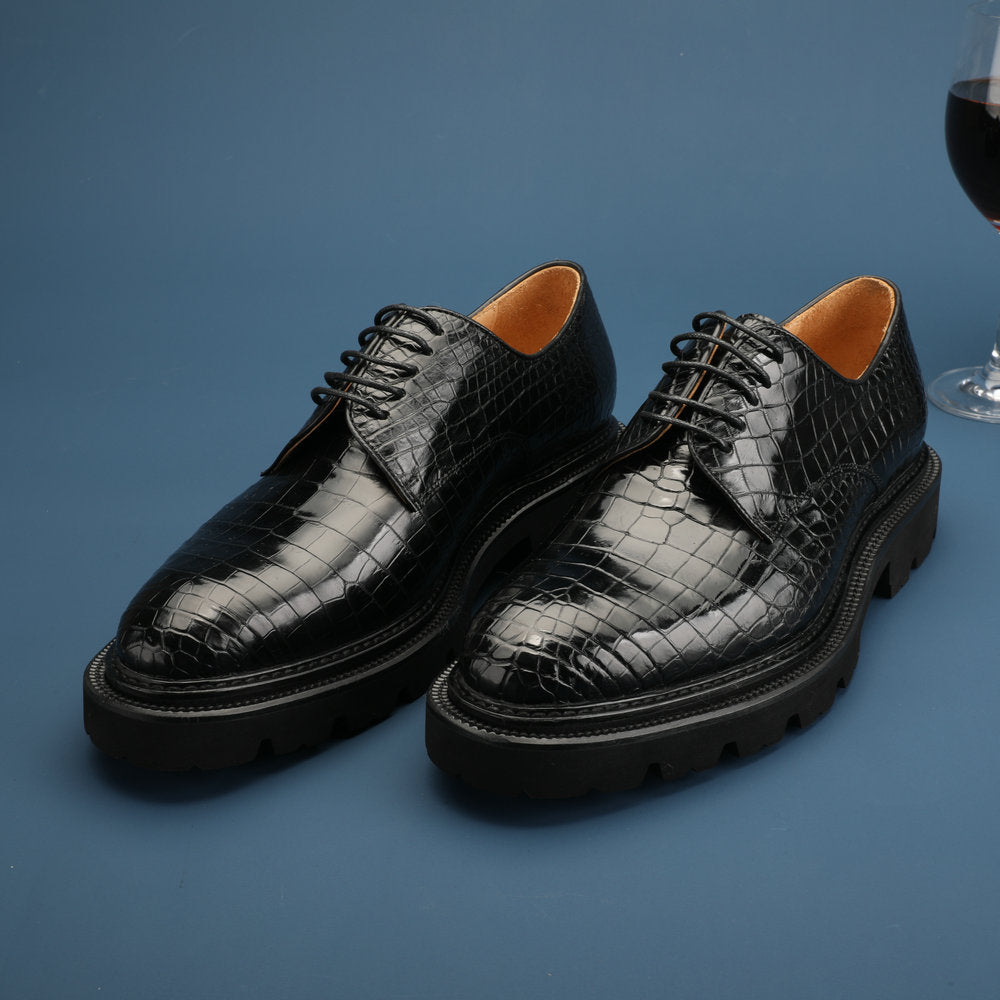 新型ワニ腹の皮メンズ革靴 本革 高品質 厚底 ビジネスシューズ