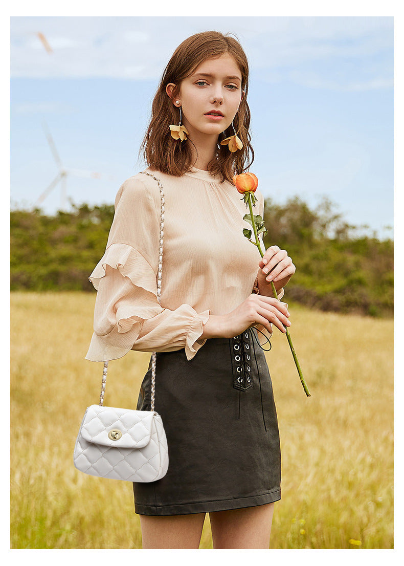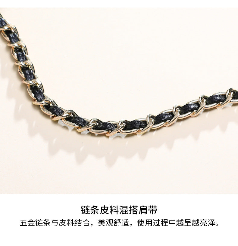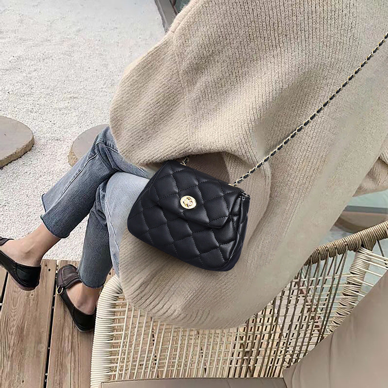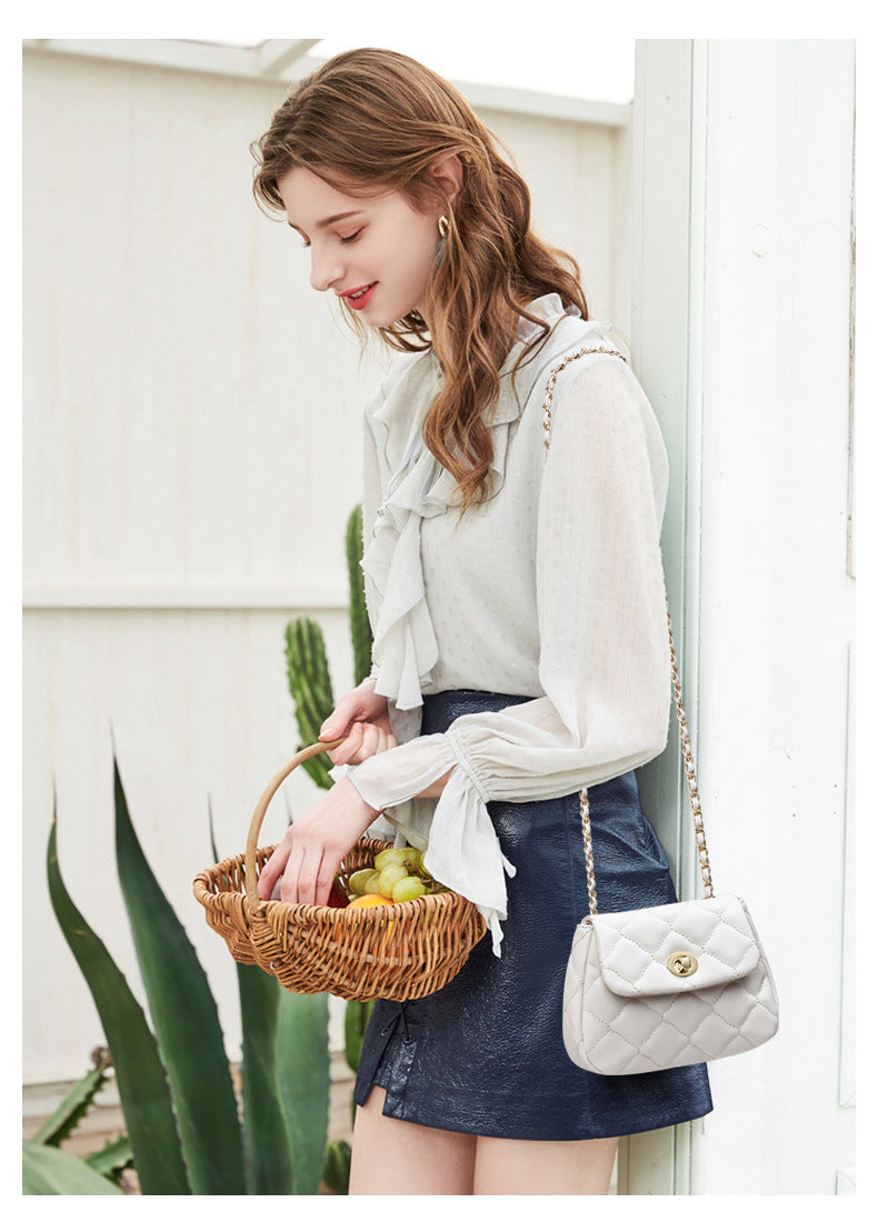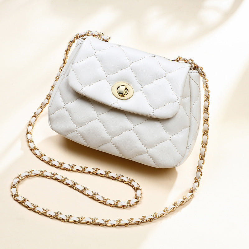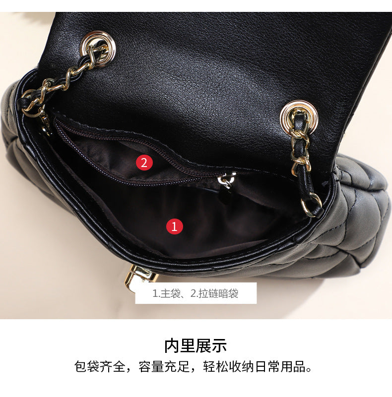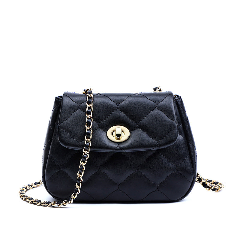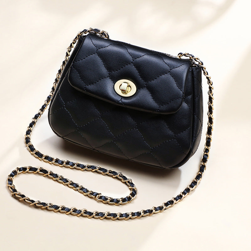本革チェック柄チェーンバッグ斜め掛けバッグシンプルエレガント何とでも合うショルダーバッグ.ポシェット