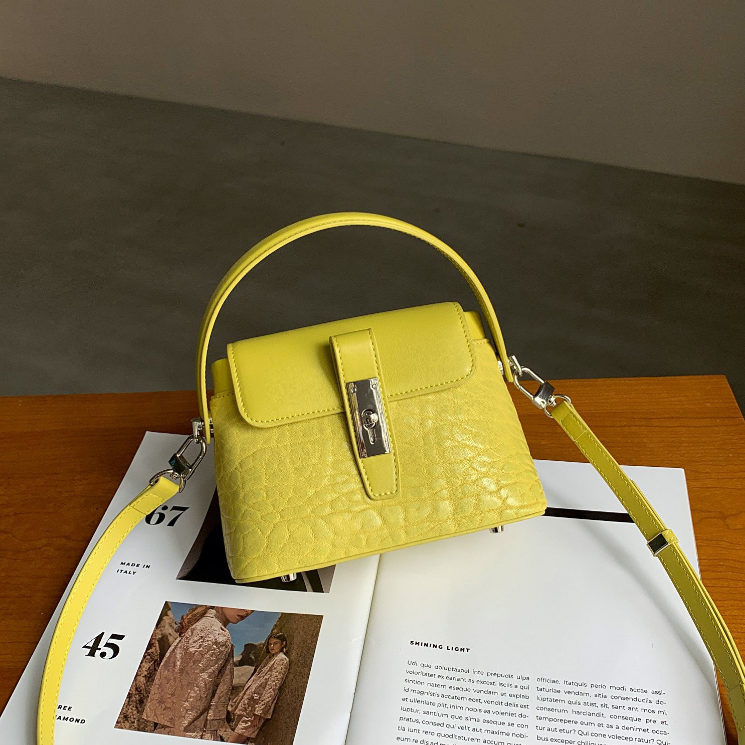本革バッグ女性ヒツジ革レトロバケツバッグ高級感ミニショルダーバッグシンプルキャンディーカラーのハンドバッグ