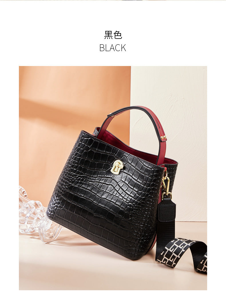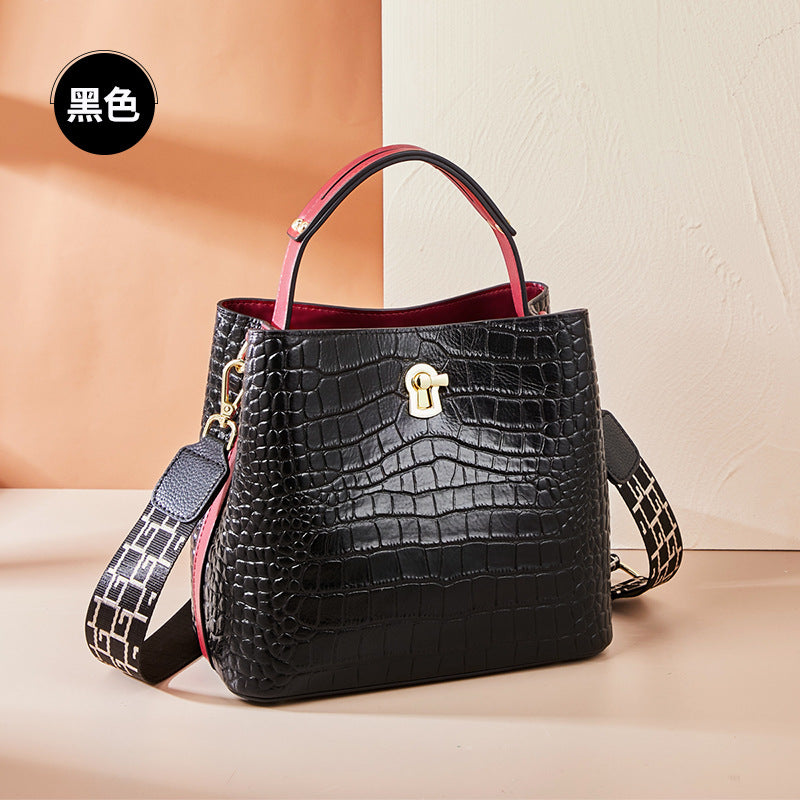本革レディースバッグカジュアルファッションバケツバッグ鰐柄ショルダーバッグブロードバンドハンドバッグ.カバン