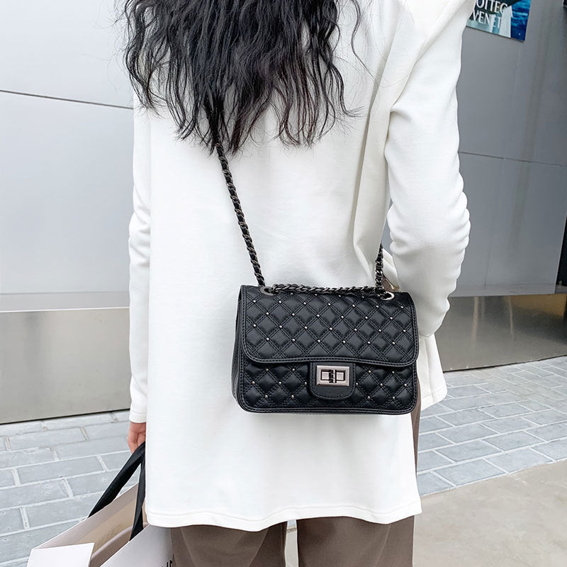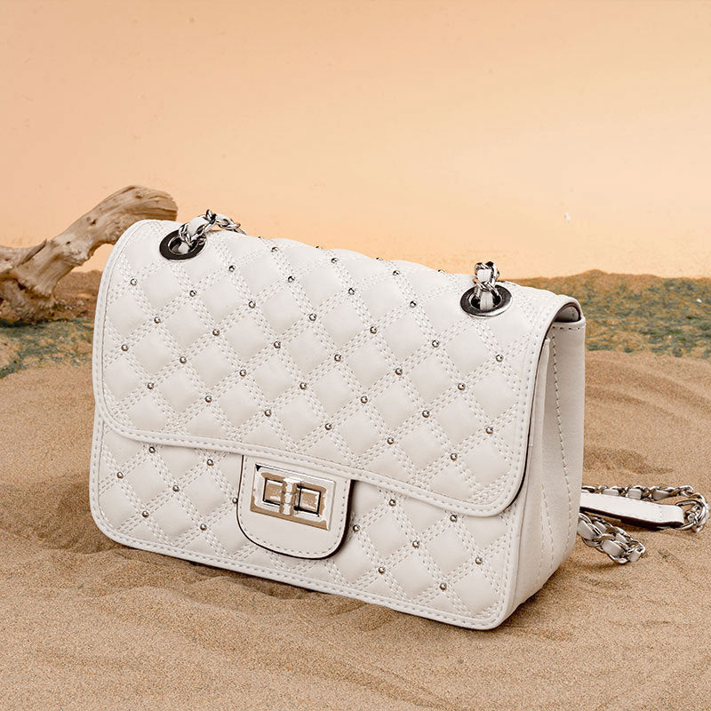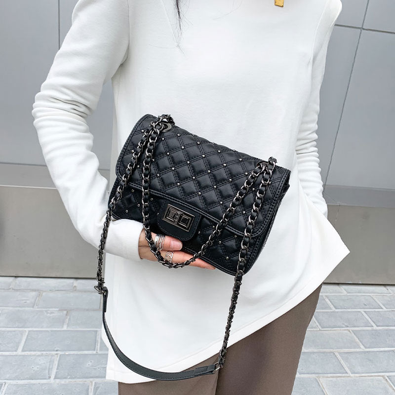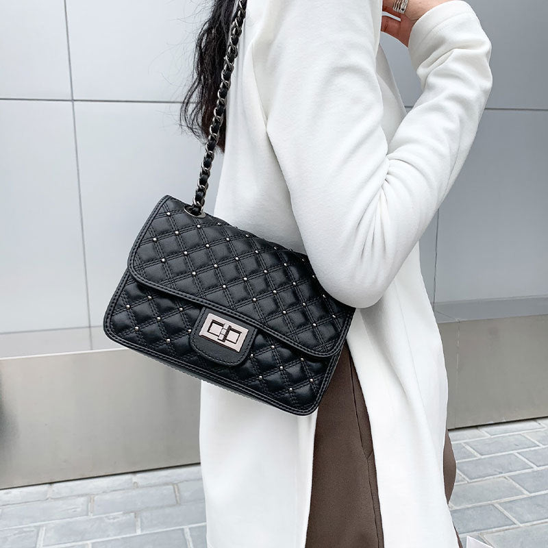 本革レディースバッグチェック柄チェーンバッグスクエアバッグシンプルエレガントショルダーバッグ.ポシェット