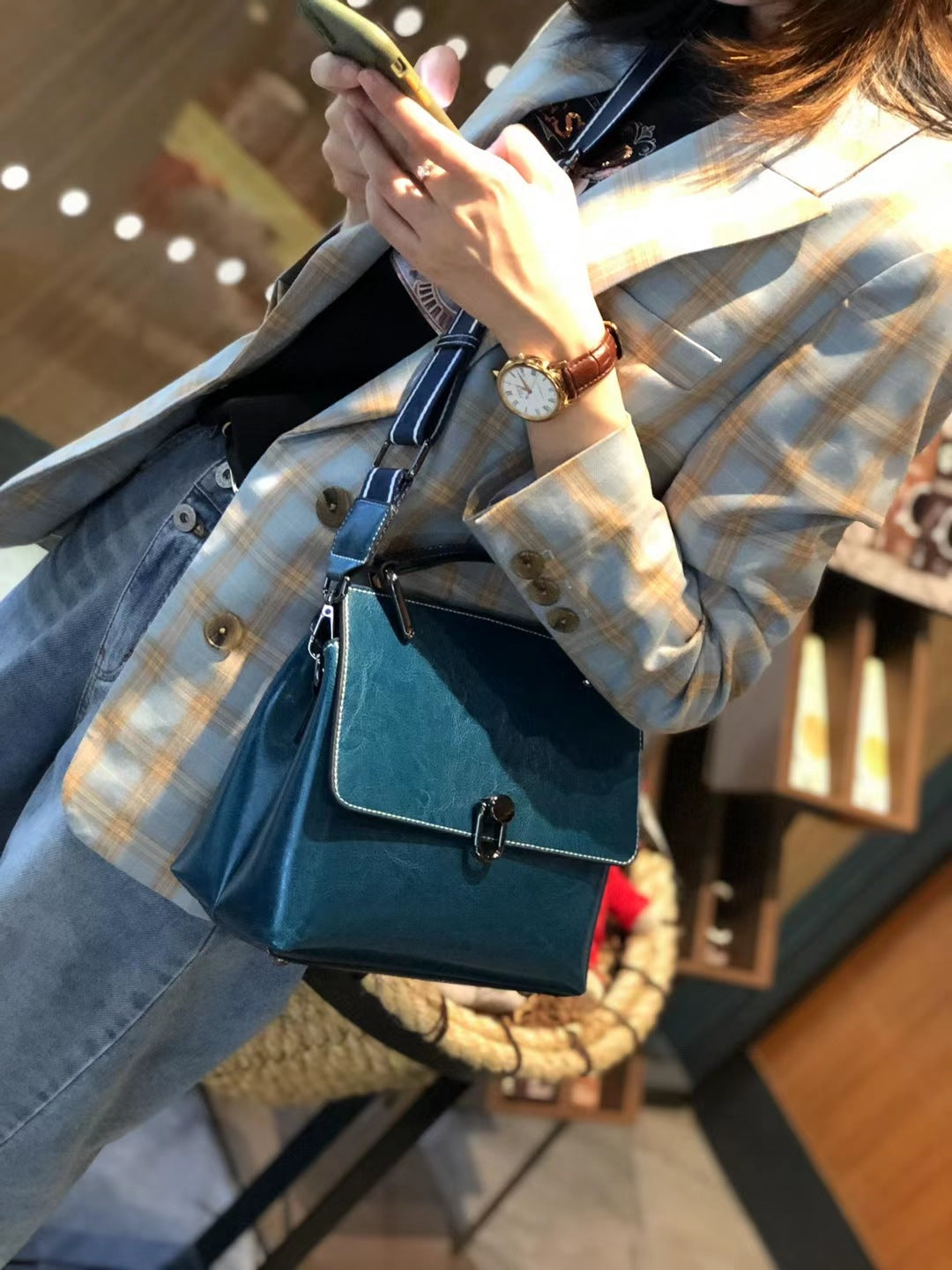 本革レディースバッグトップレイヤー牛革ハンドバッグショルダーバッグ大容量ロックバッグレトロハンドバッグ.カバン