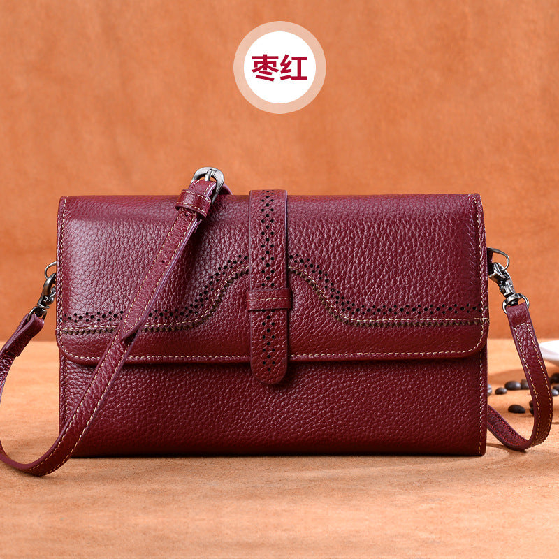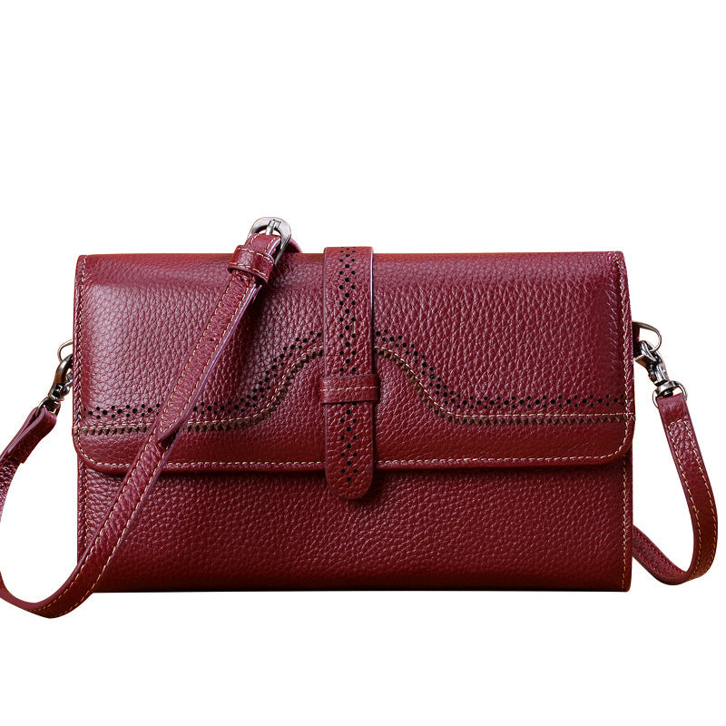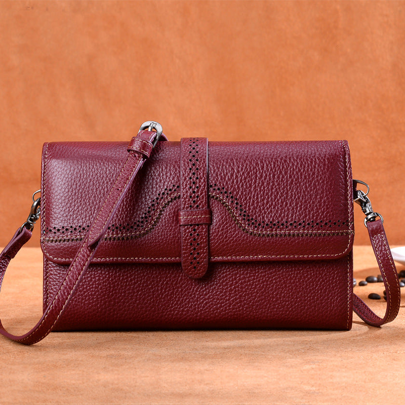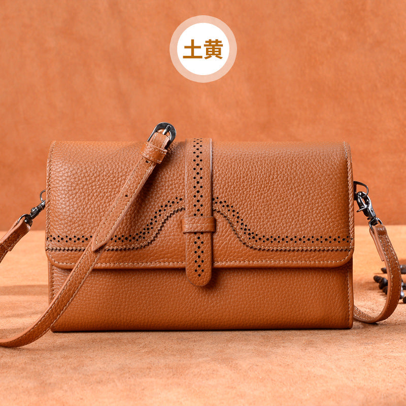 本革レディースバッグミニ透かし彫り斜め掛けバッグ何とでも合う牛革スクエアバッグシンプルショルダーバッグ.ポシェット