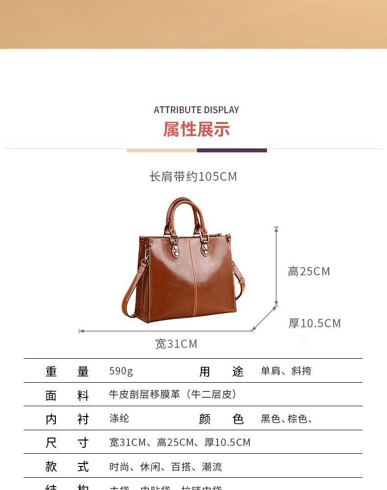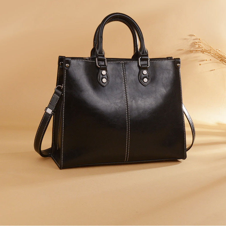 本革レディースバッグ牛革ハンドバッグレトロトートバッグ 大容量カジュアルシンプルショルダーバッグハンドバッグ.カバン