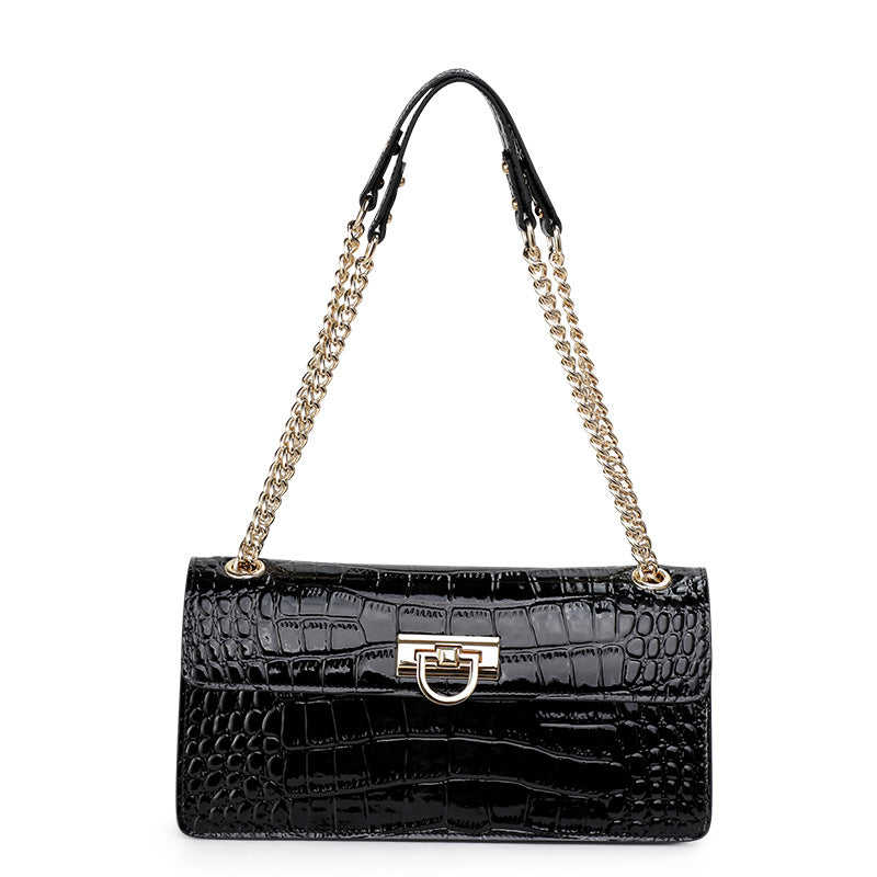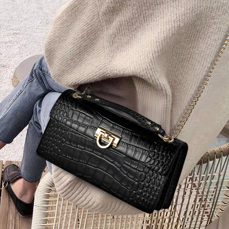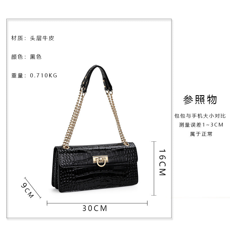 本革レディースバッグ鰐柄ファッションチェーンバッグ高品質斜め掛けバッグスクエアバッグ気質ショルダーバッグ.ポシェット
