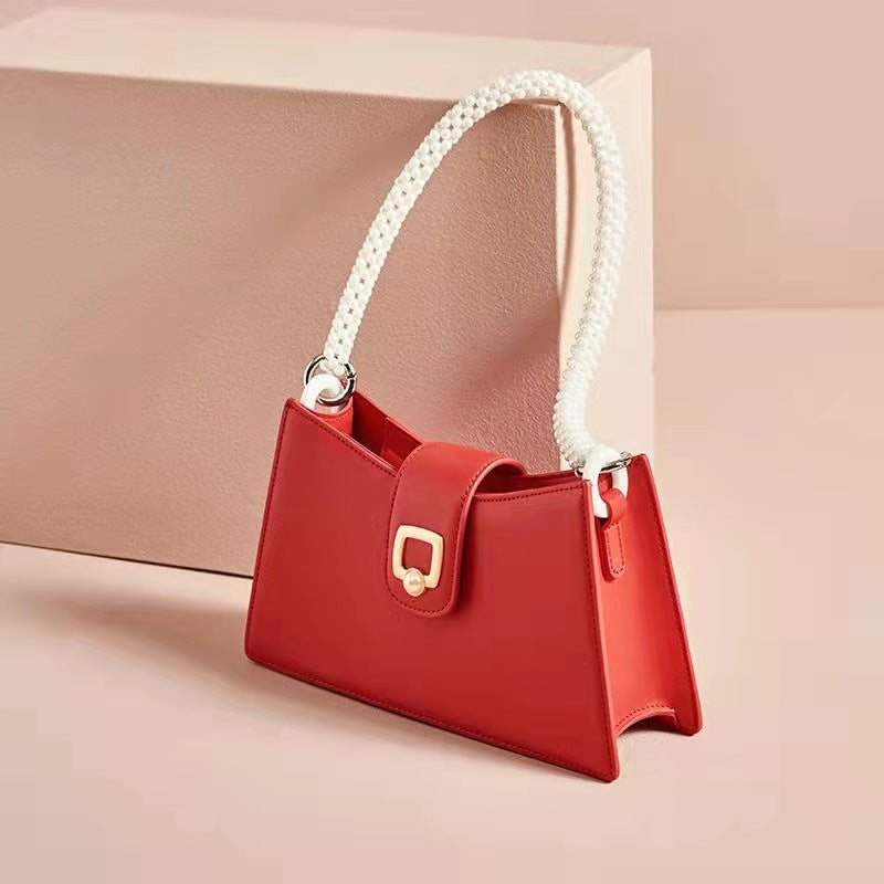 本革レディースパールハンドバッグおしゃれ斜め掛けバッグ高級感シンプルショルダーわきの下バッグショルダーバッグ.ポシェット