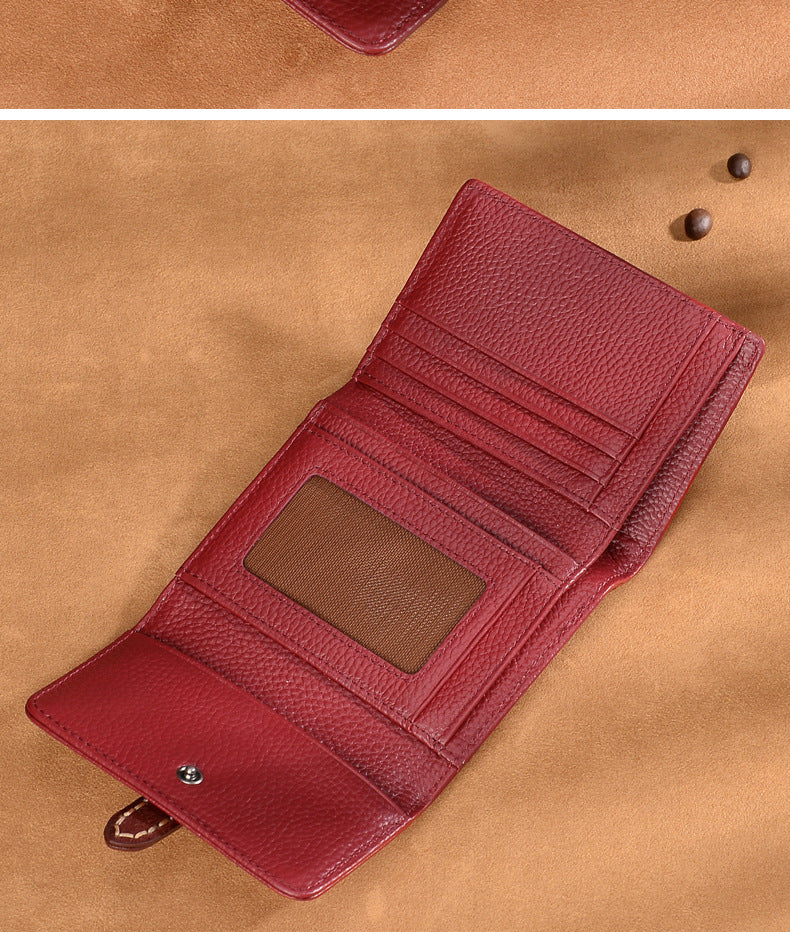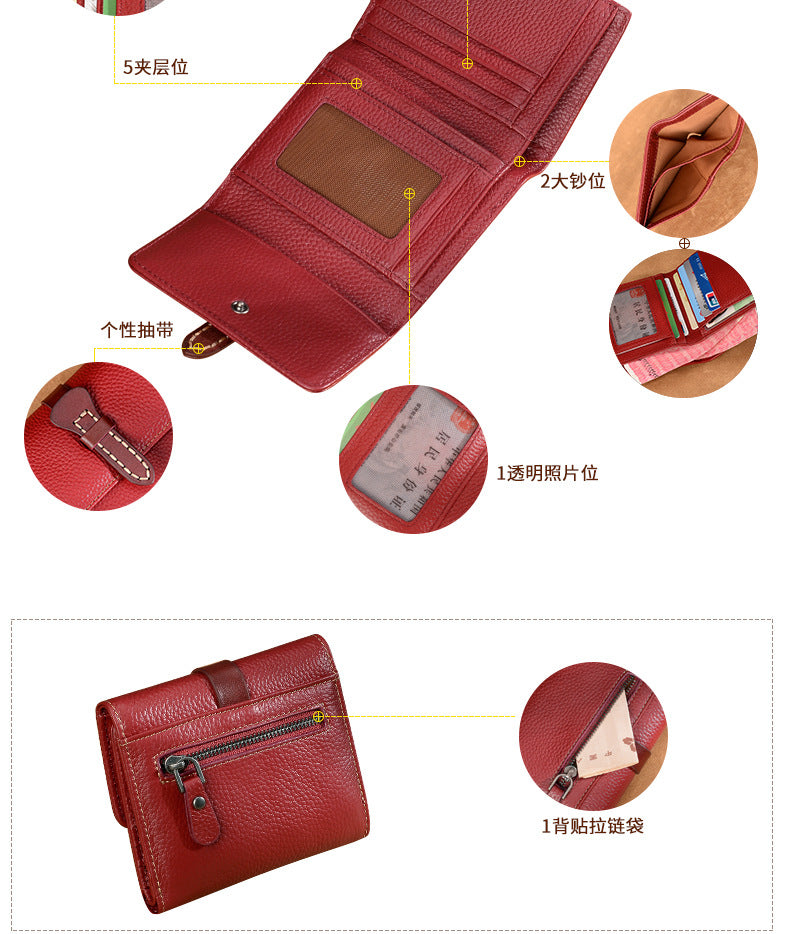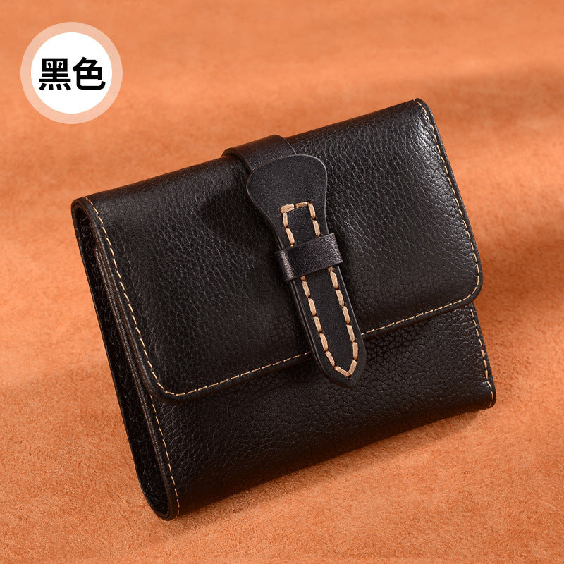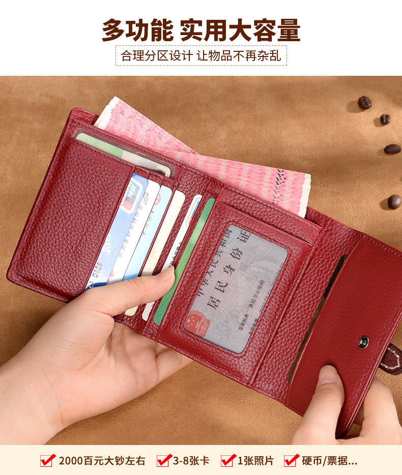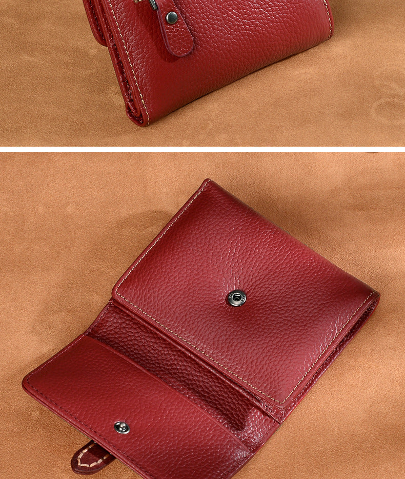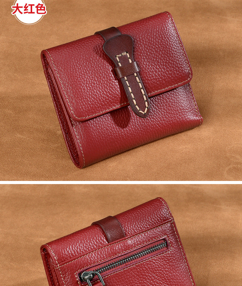 本革レディース財布短い牛革三つ折りバックル手作業牛革財布ファスナー小銭入れウォレット