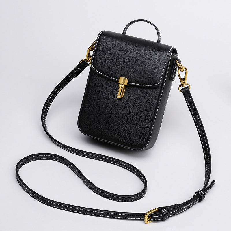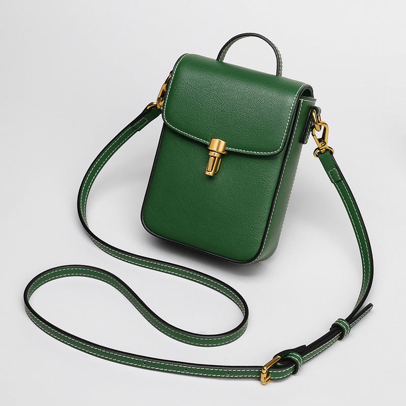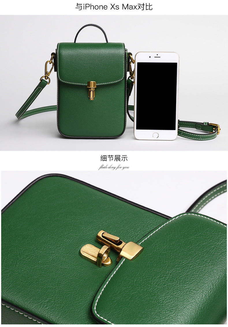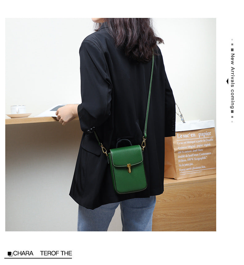 本革携帯バッグレディースミニ斜め掛けバッグトレンド縦タイプ牛革シンプルショルダーバッグ.ポシェット