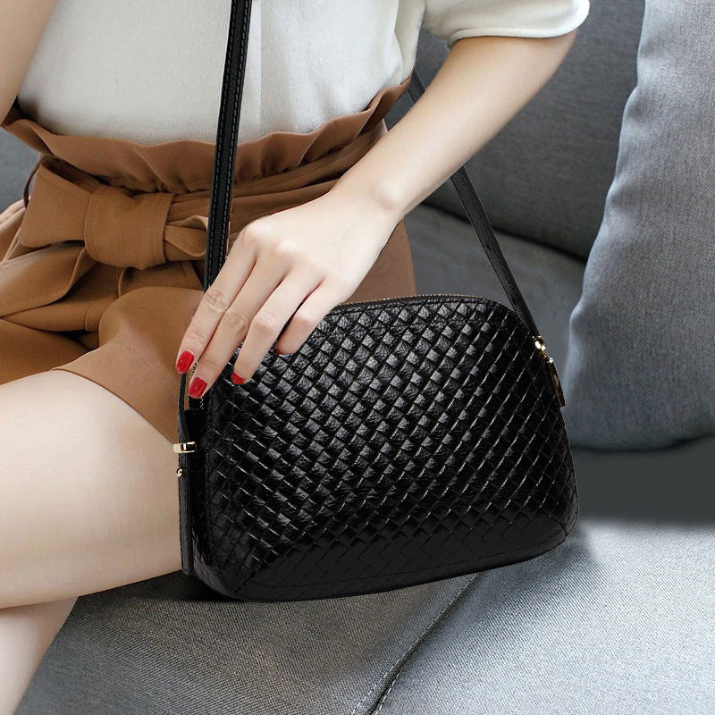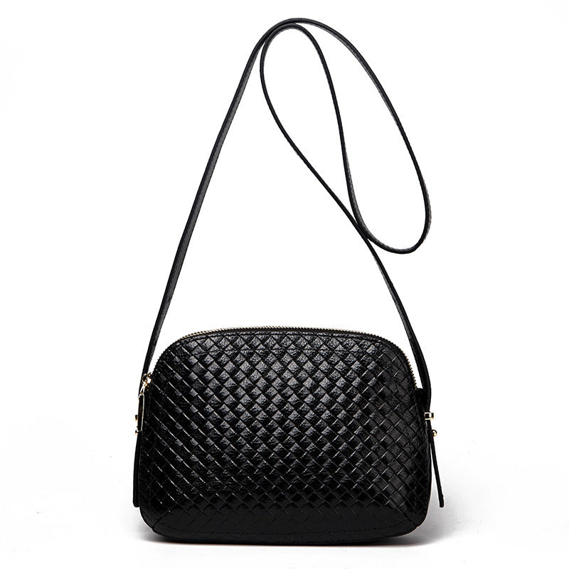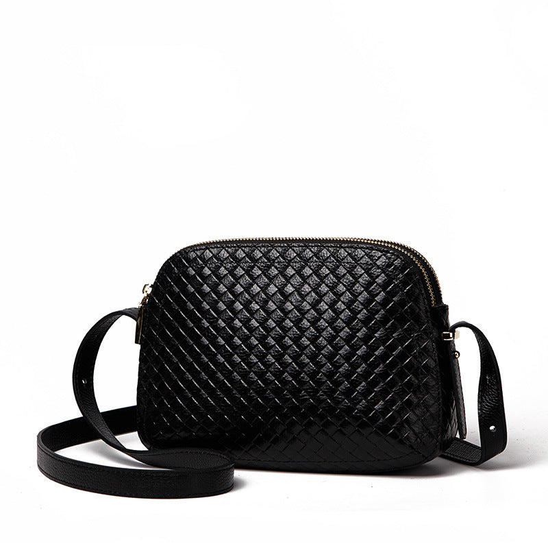 本革編みレディースバッグオールインワン斜め掛けバッグおしゃれシンプル 牛革何とでも合うショルダーバッグ.ポシェット