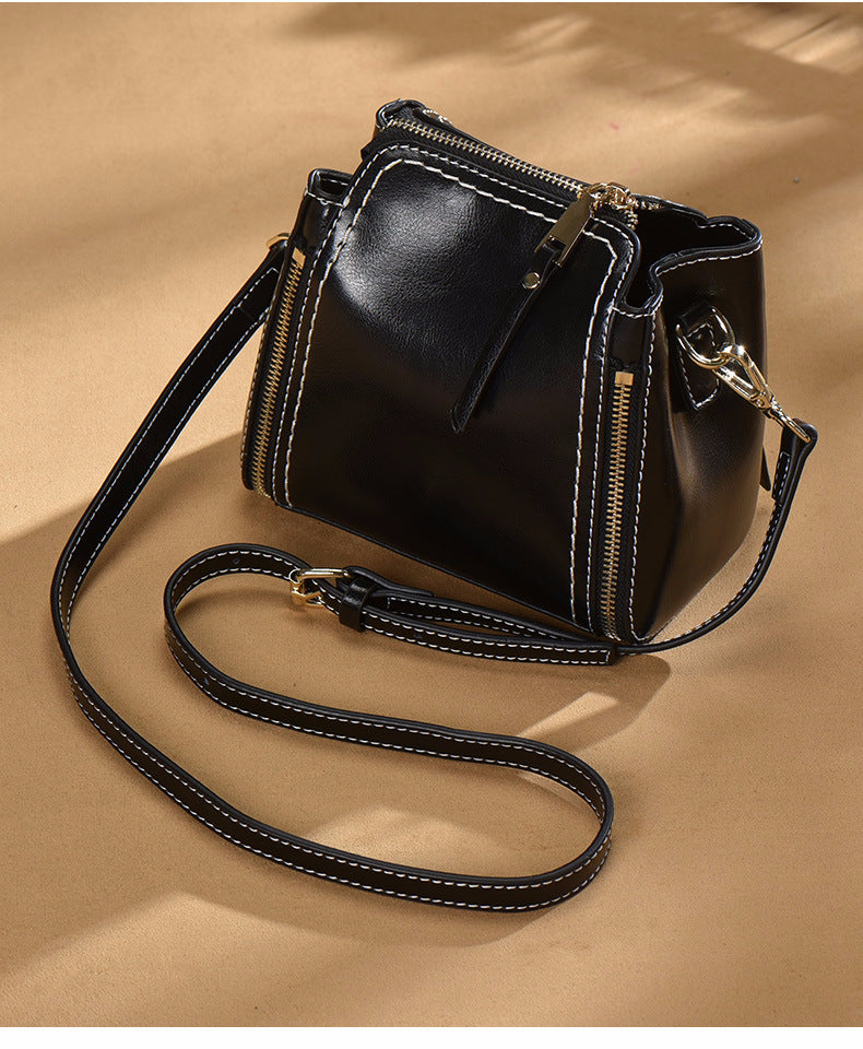 牛革の女性バッグレトロ何とでも合う斜め掛けバッグファッションバケツバッグ本革ショルダーバッグ.ポシェット