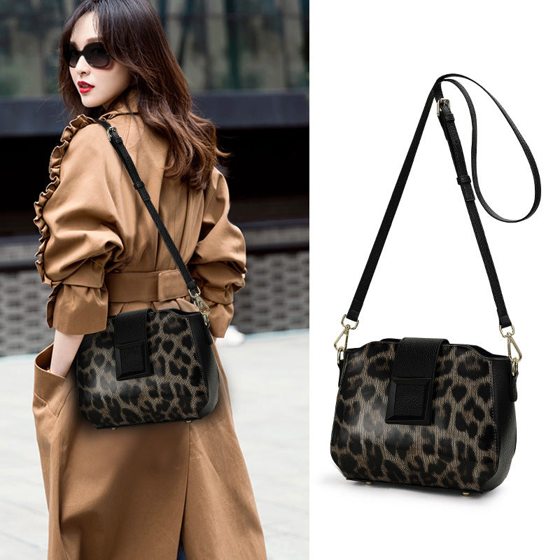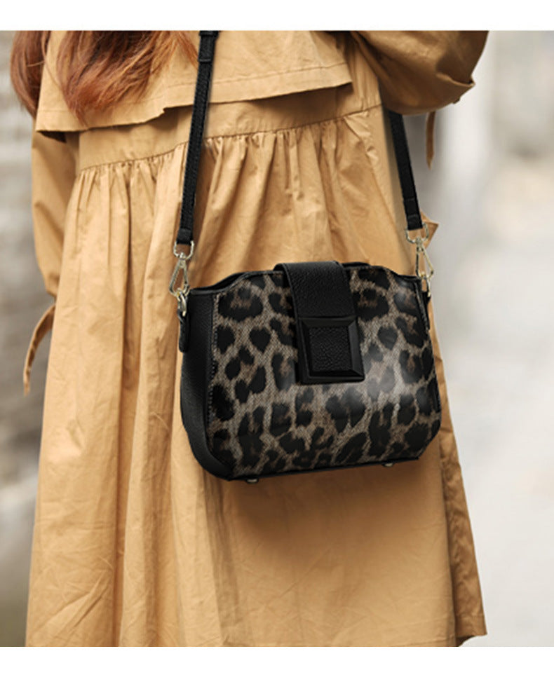 牛革レディースバッグヒョウ柄ファッション本革バッグ何とでも合うレトロショルダーバッグ.ポシェット