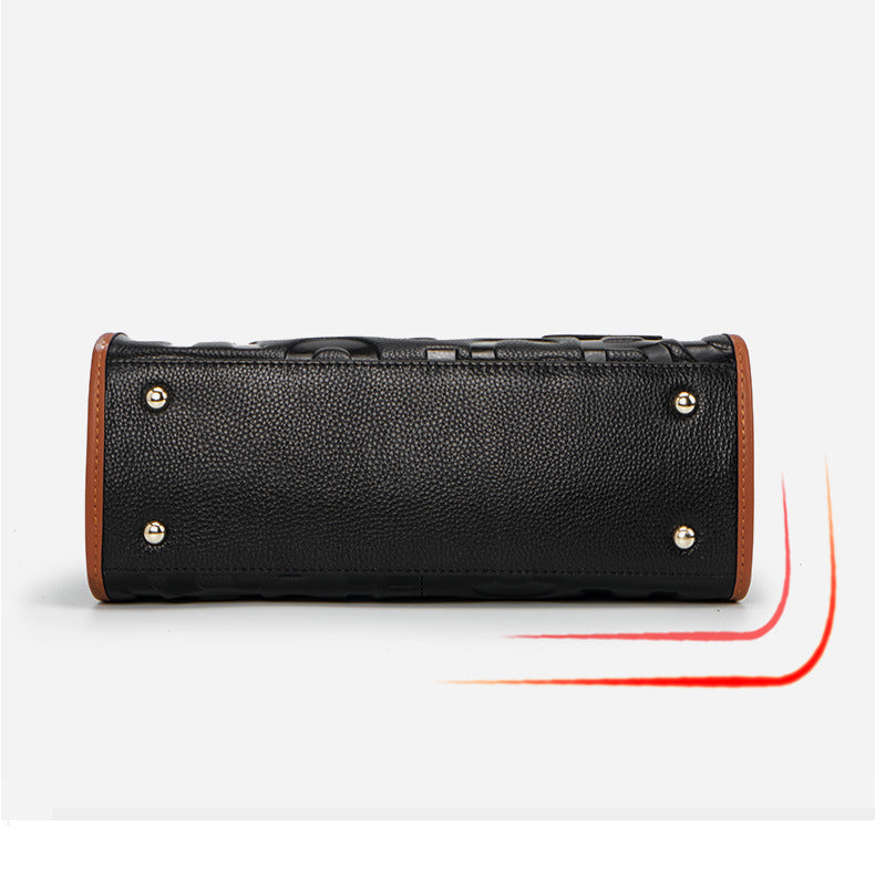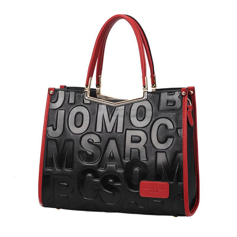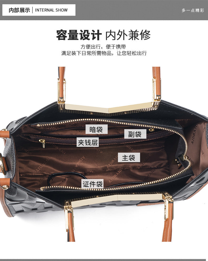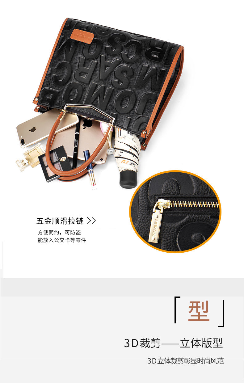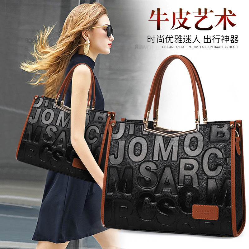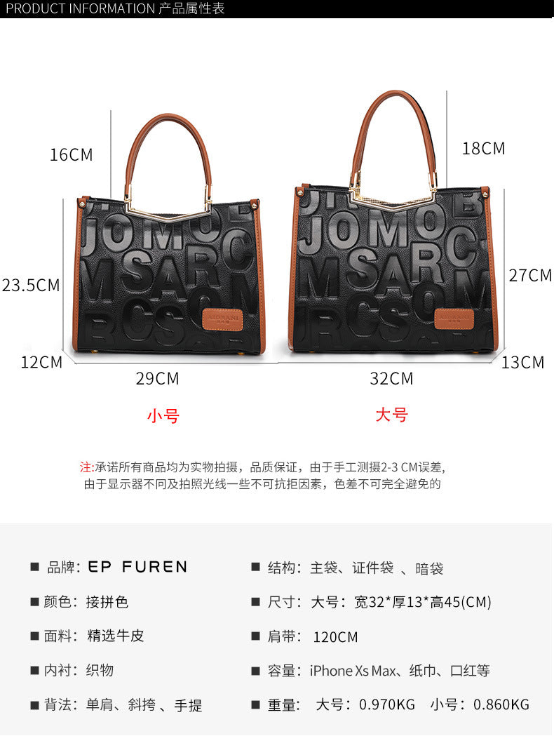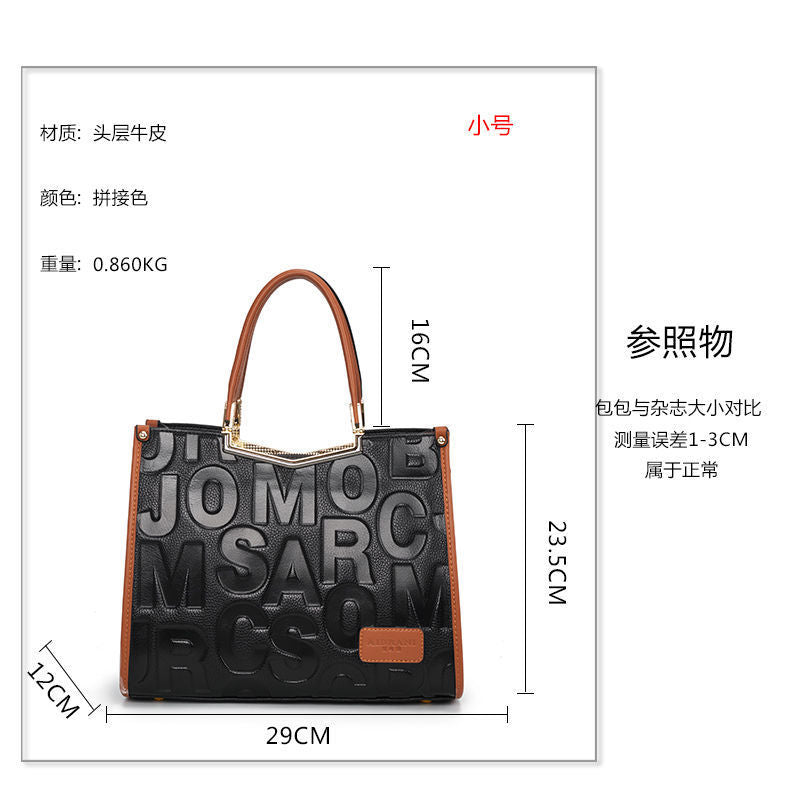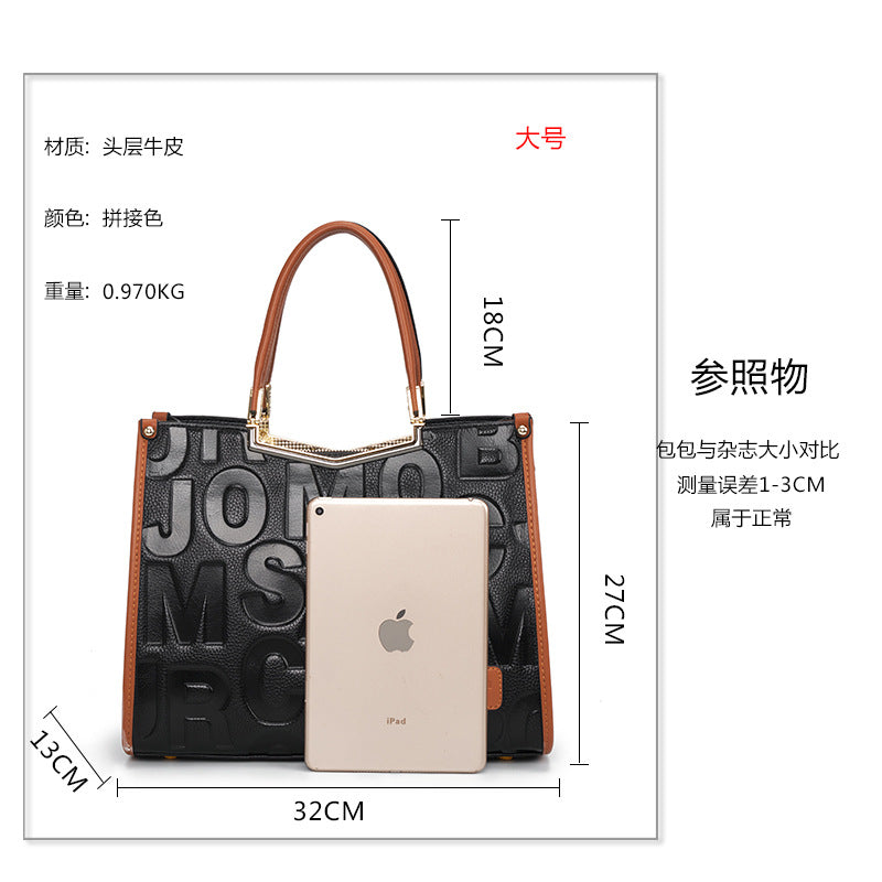 牛革レディースバッグ字母柄トレンド大容量ファッションハンドバッグ何とでも合うショルダーバッグ本革ハンドバッグ.カバン