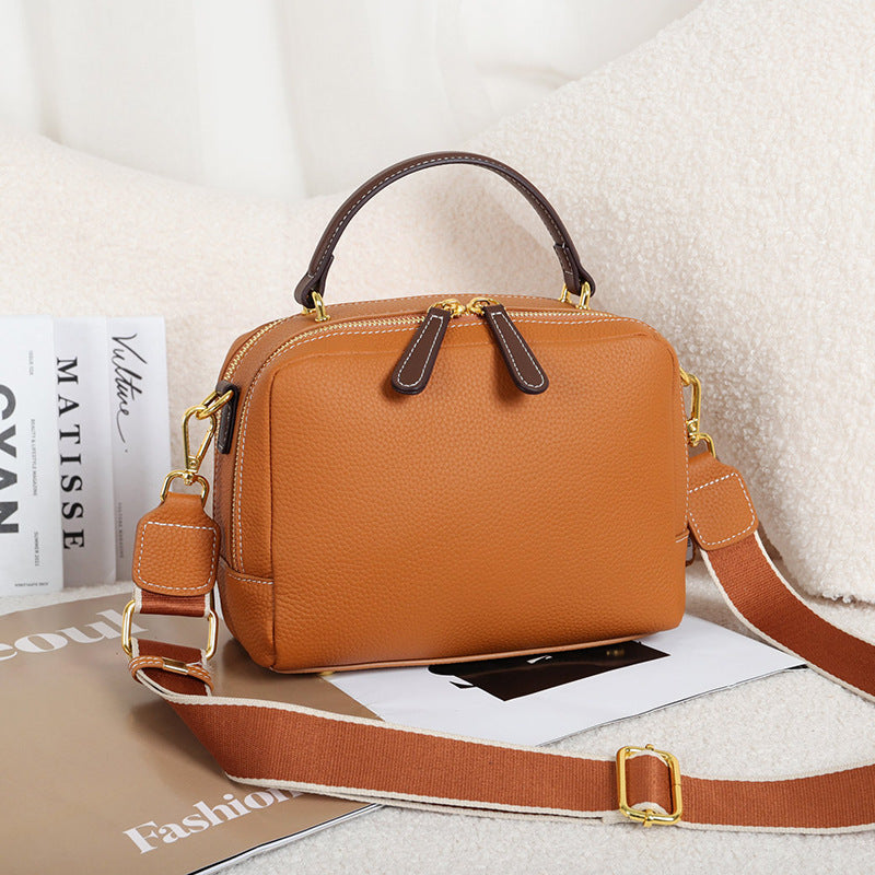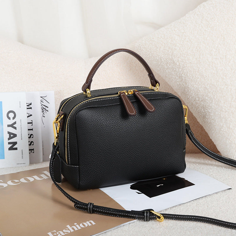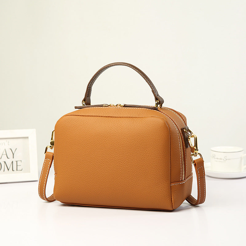 2022秋冬新款头层牛皮手提小方包女斜挎高级感简约真皮女士单肩包