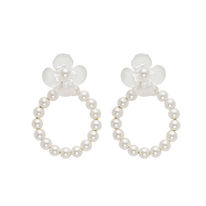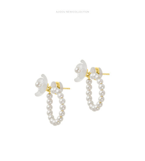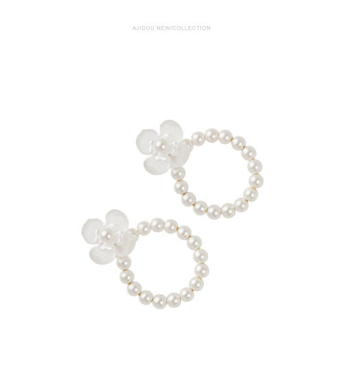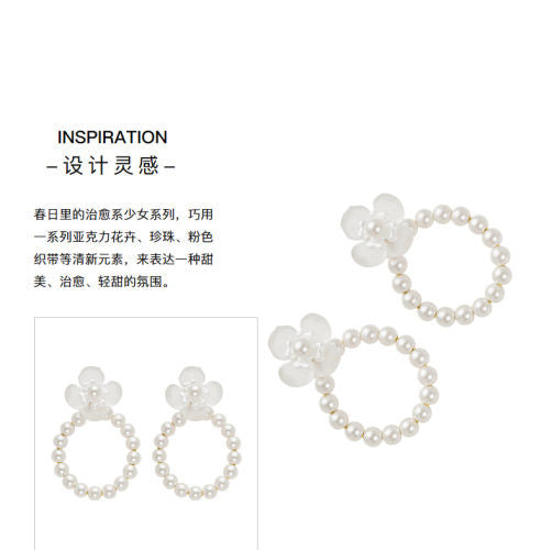 癒し系少女真珠花卉小輪ピアスシンプル学生アクセサリーイヤリング贈り物