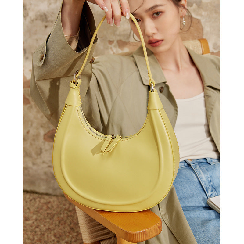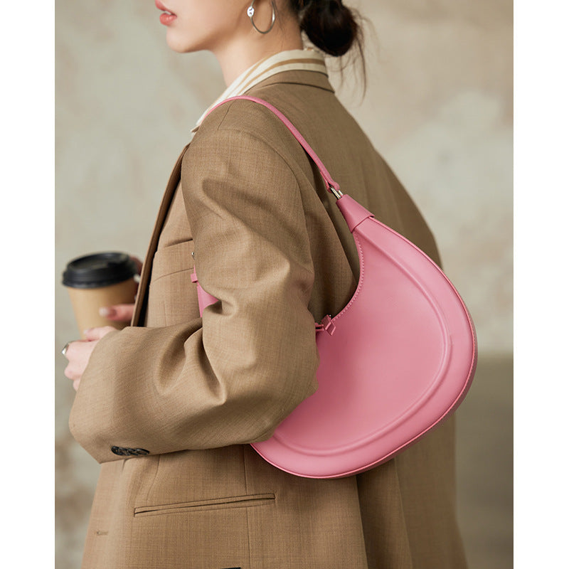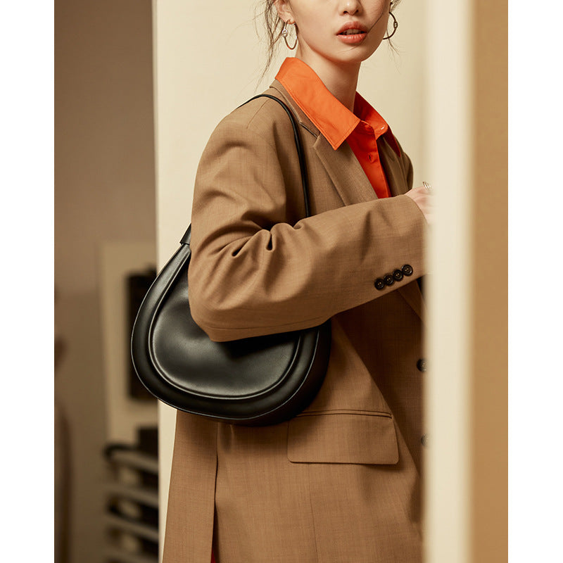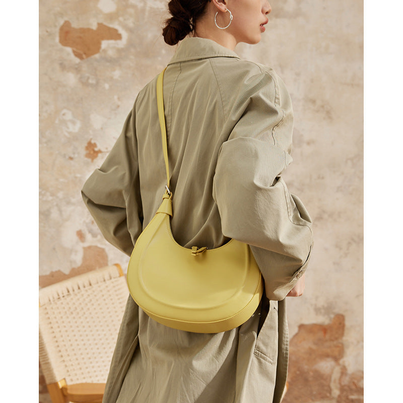 本革わきの下バッグ女性斜め掛けバックおしゃれ高級感牛革ショルダーバッグハーフムーン·バッグ