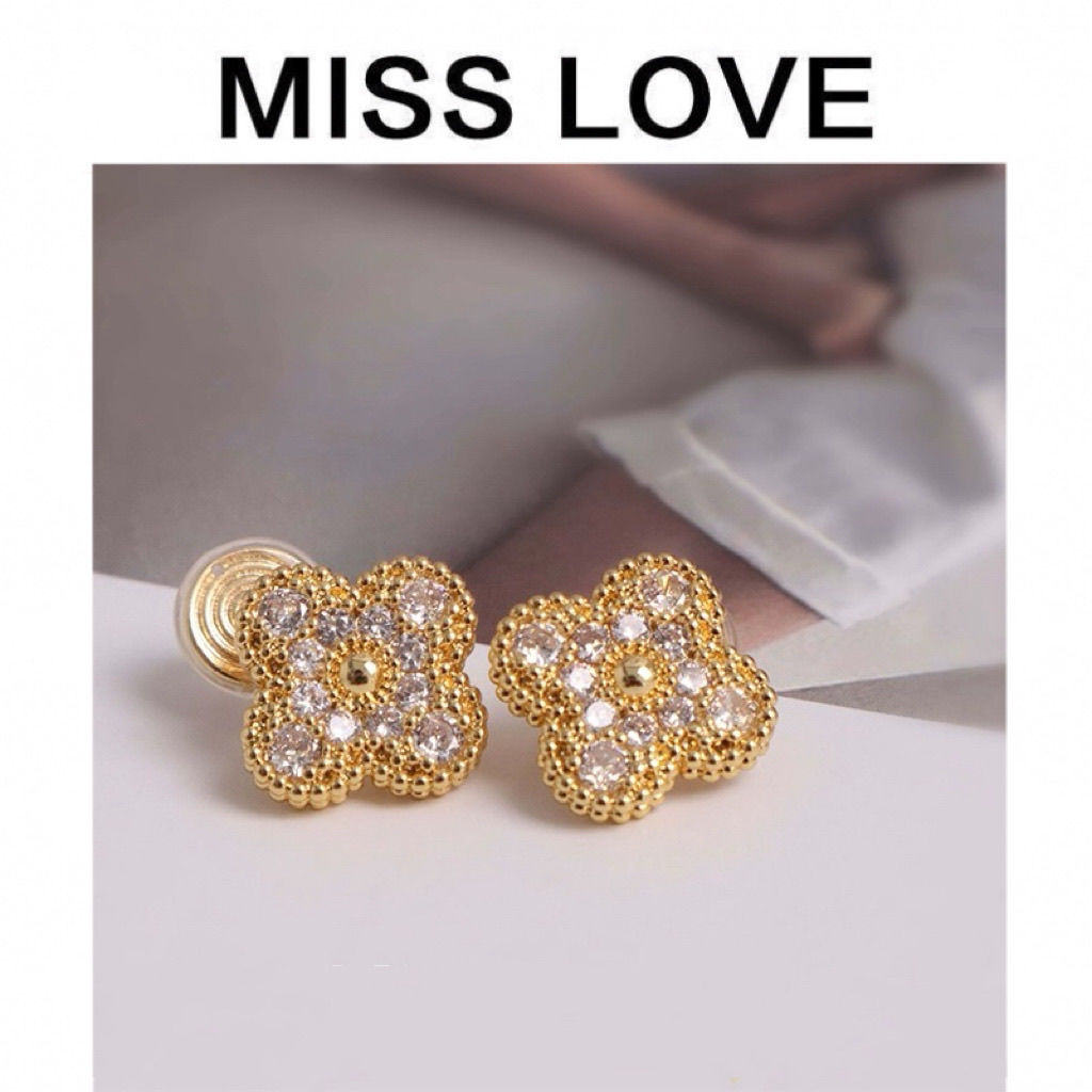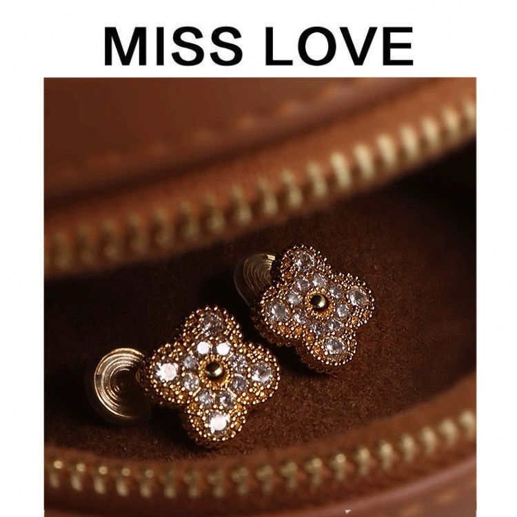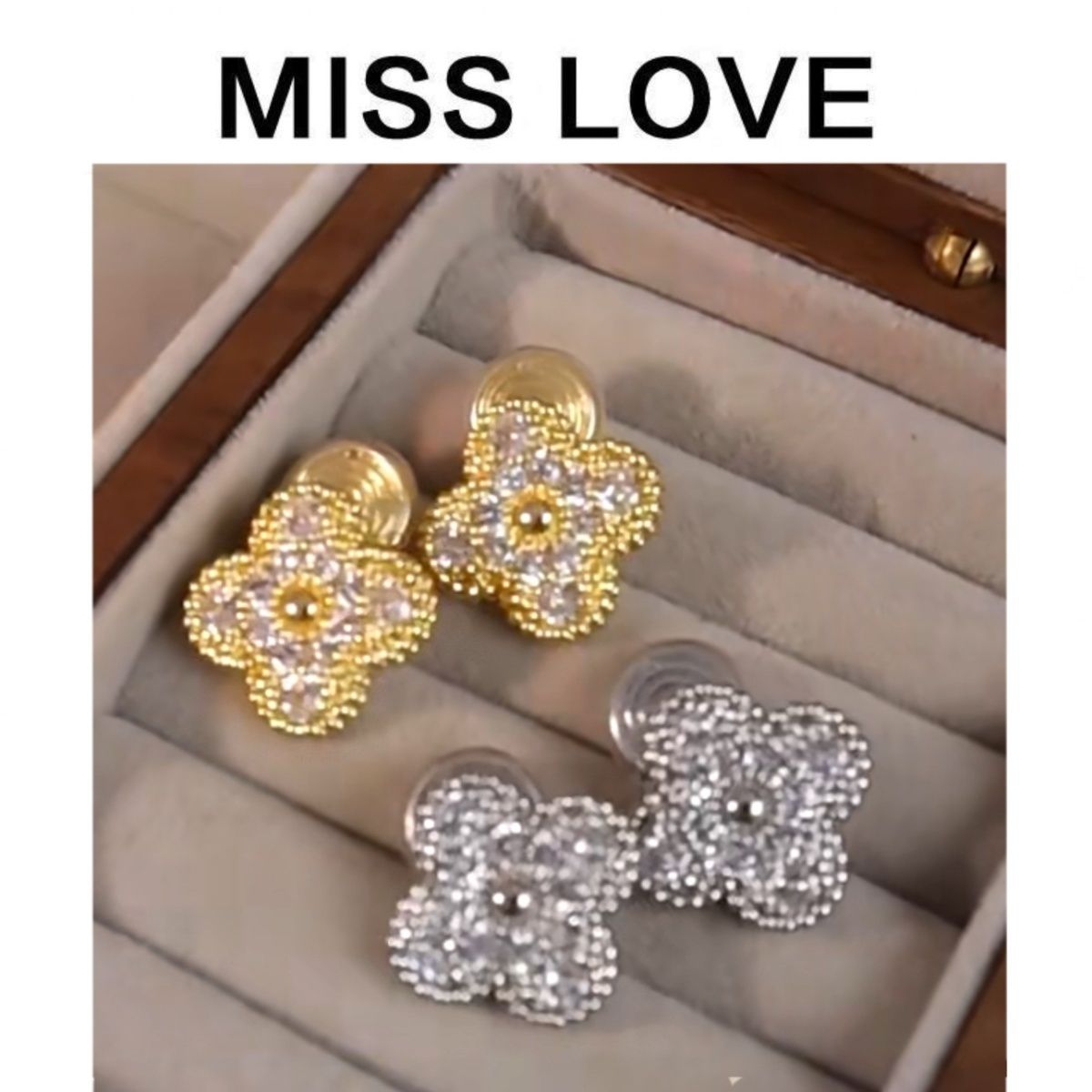 秋冬ゴールドイヤークリップピアス穴なし女性新型四つ葉のクローバーピアス高級感気質偽ピアス