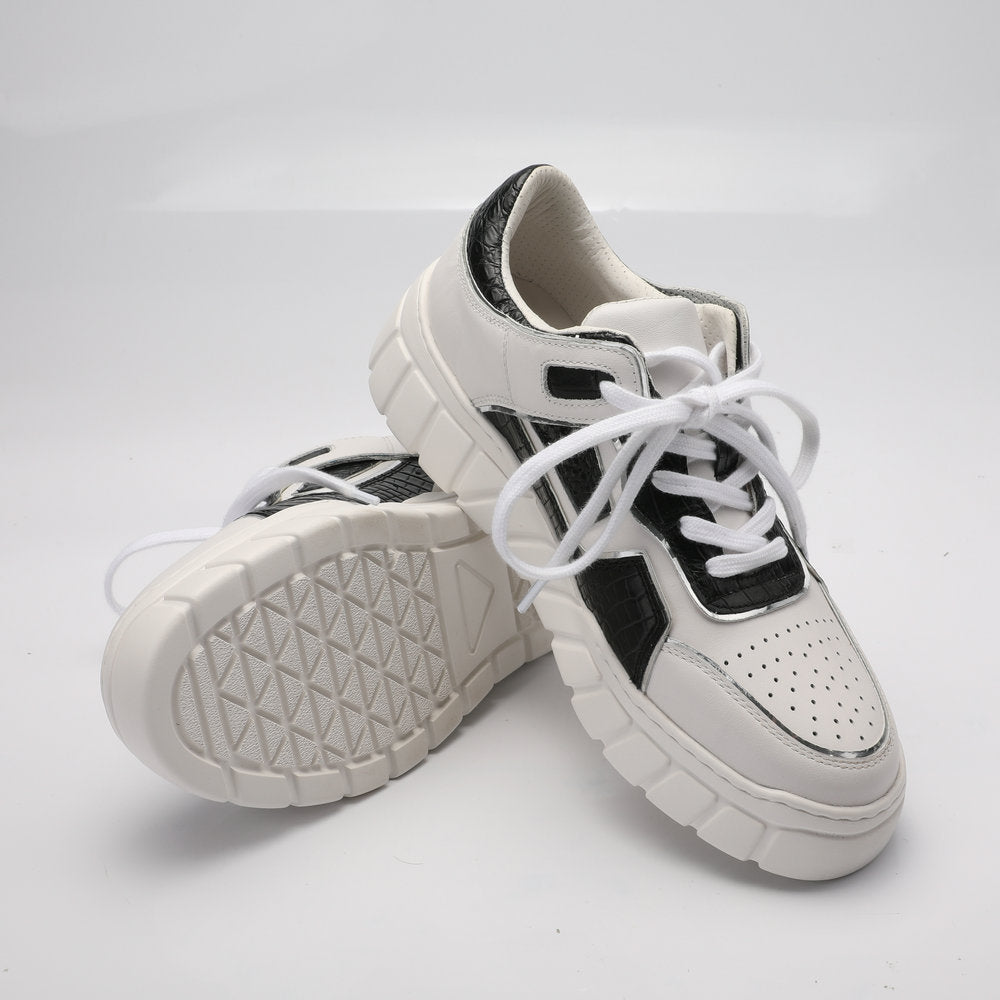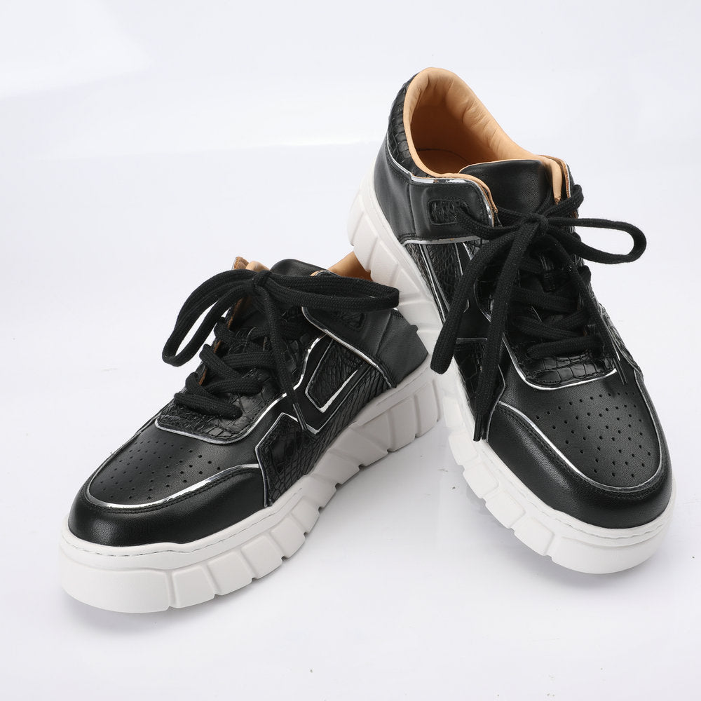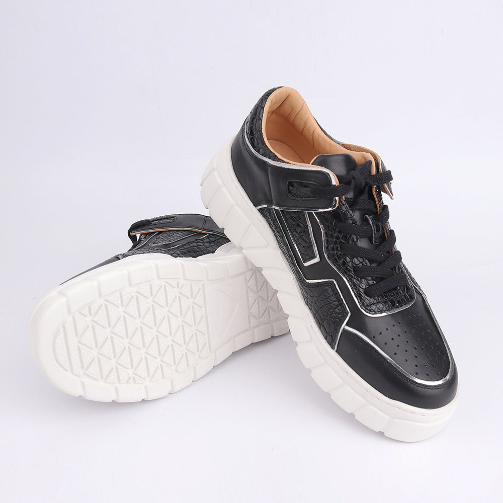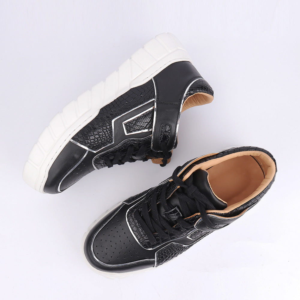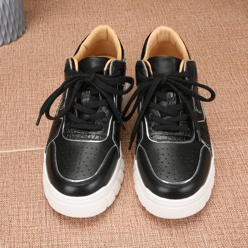 2023新品 ワニ腹の皮 メンズカジュアルシューズ 優れた通気性 ファッション厚底男性靴