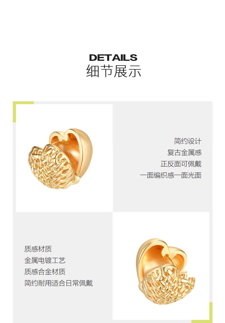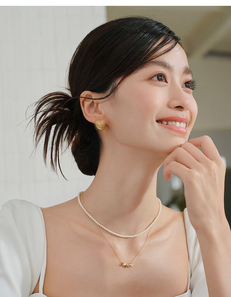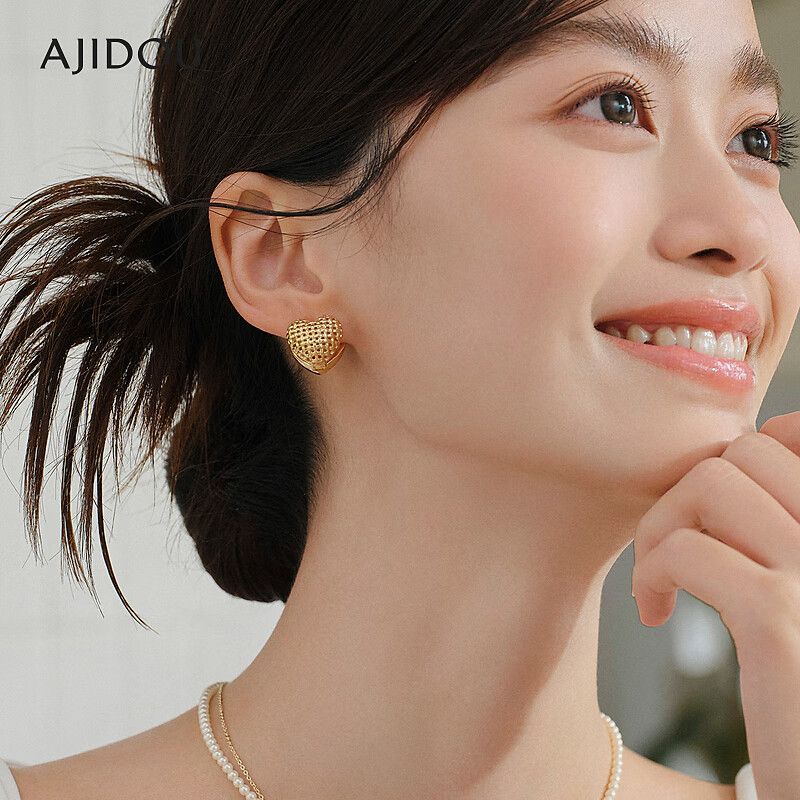AJIDOUエレガントでコンパクトなハートのイヤリングゴールドのハート型ピアス洗練されたギフト