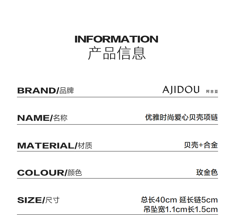AJIDOUエレガントスタイリッシュハート付き貝殻ネックレス贅沢insシンプルギフト
