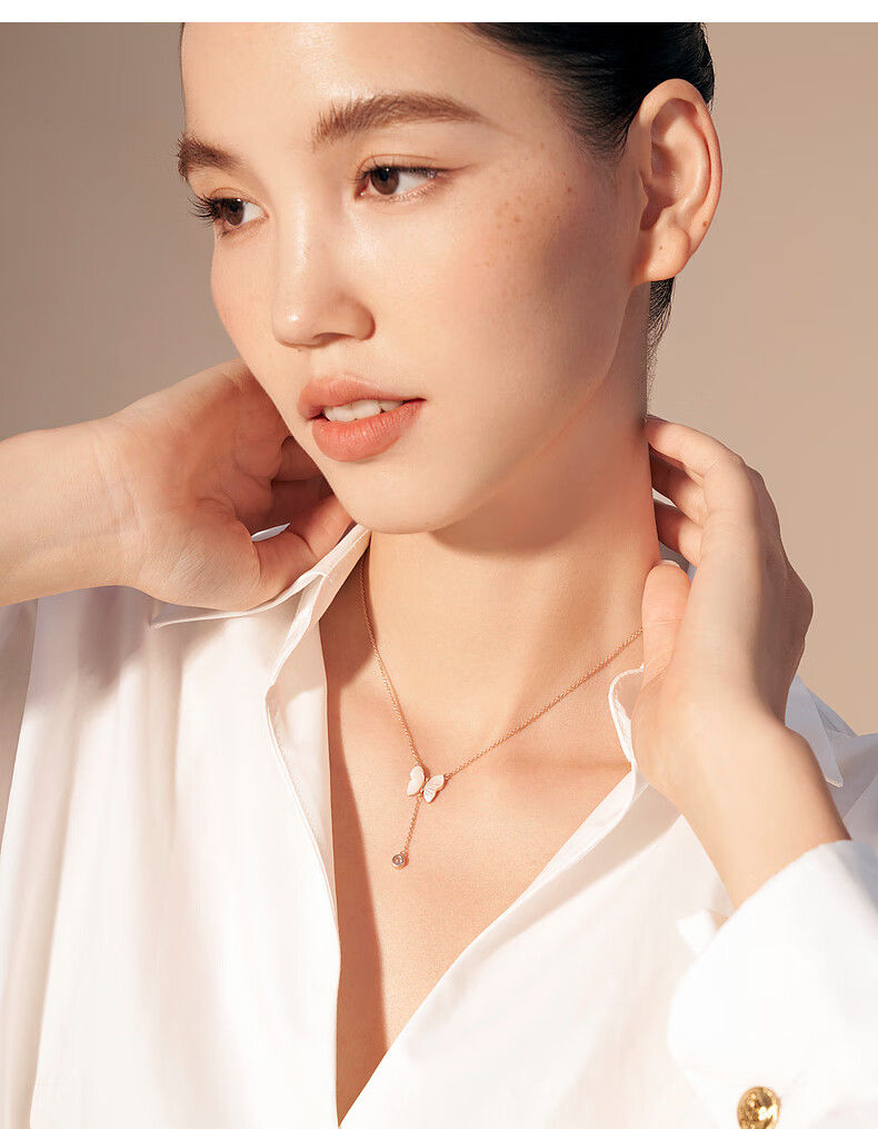 AJIDOUエレガントスタイリッシュ彩貝蝶ネックレスシンプル高級感贅沢鎖骨チェーン女性